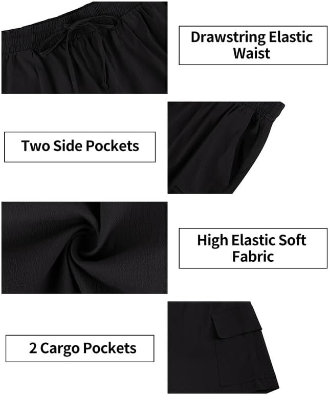 【Features】Elastic waistband for stretchy fit, Pockets both sides, Basic Solid, Adjustable waist drawstring