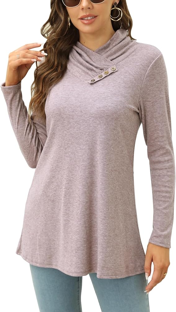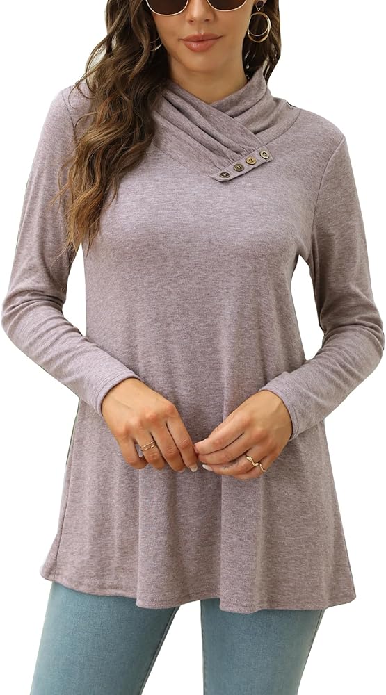 Cowl Neck Top: This trendy long sleeve cowl neck tunic tops for women with flowy hem to cover belly and hips. The fall sweatshirts tops length is the perfect for ladies. The decor 4-buttons design on tunic shirts make you look more fashion and cute.