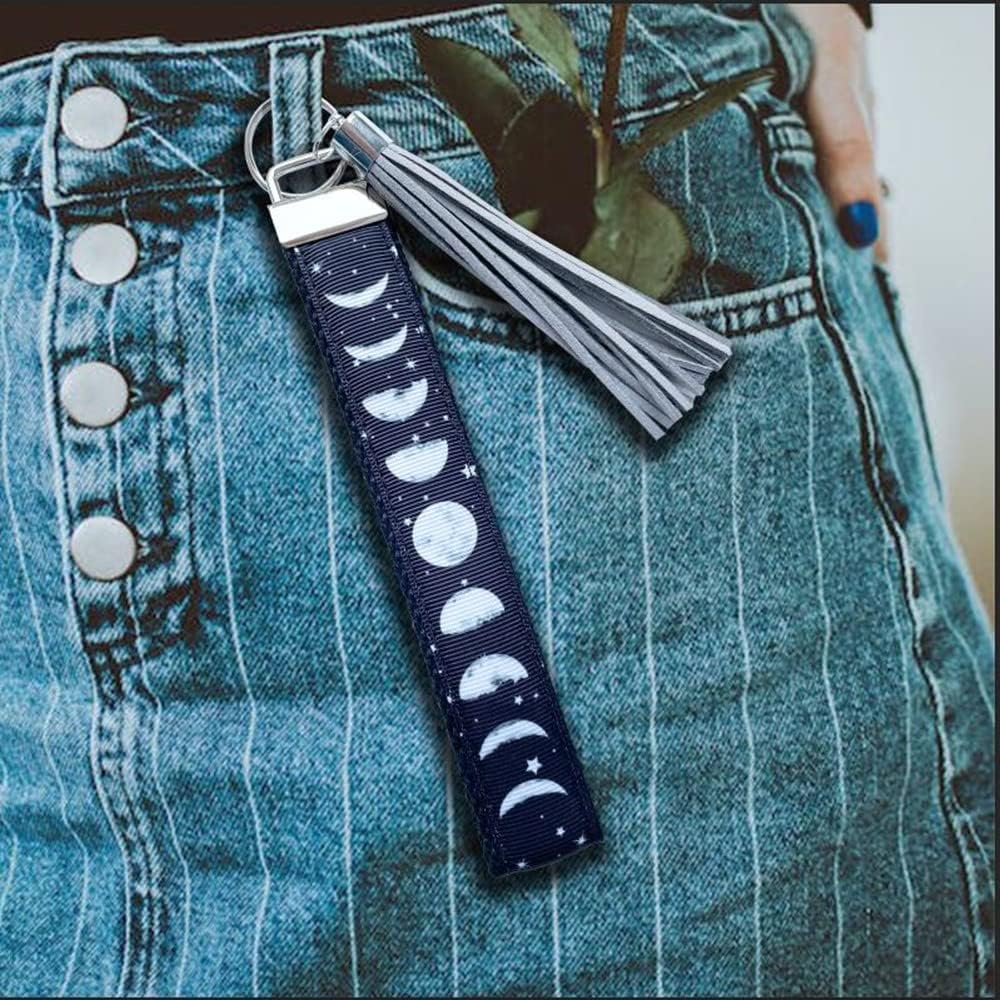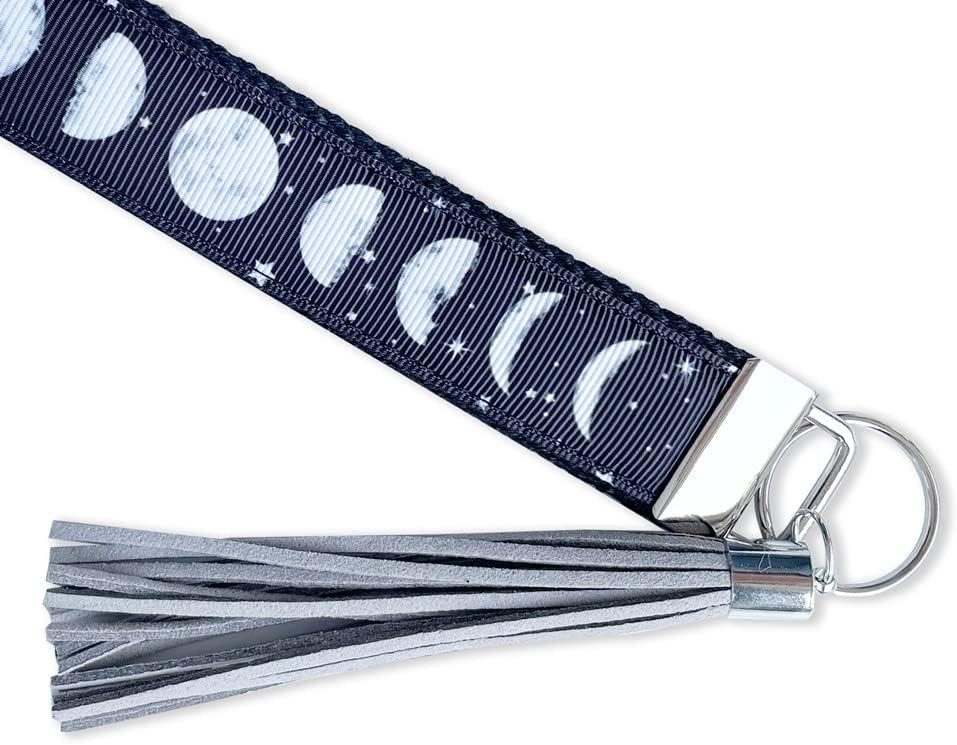 ♥Durable and soft material: I created this wristlet key chain out of Moon / Star print on black grosgrain ribbon.The key lanyard is made of high-quality alloy metal buckle, which is more durable when used,High quality fabric,and can be used for a long time without skin allergies.
