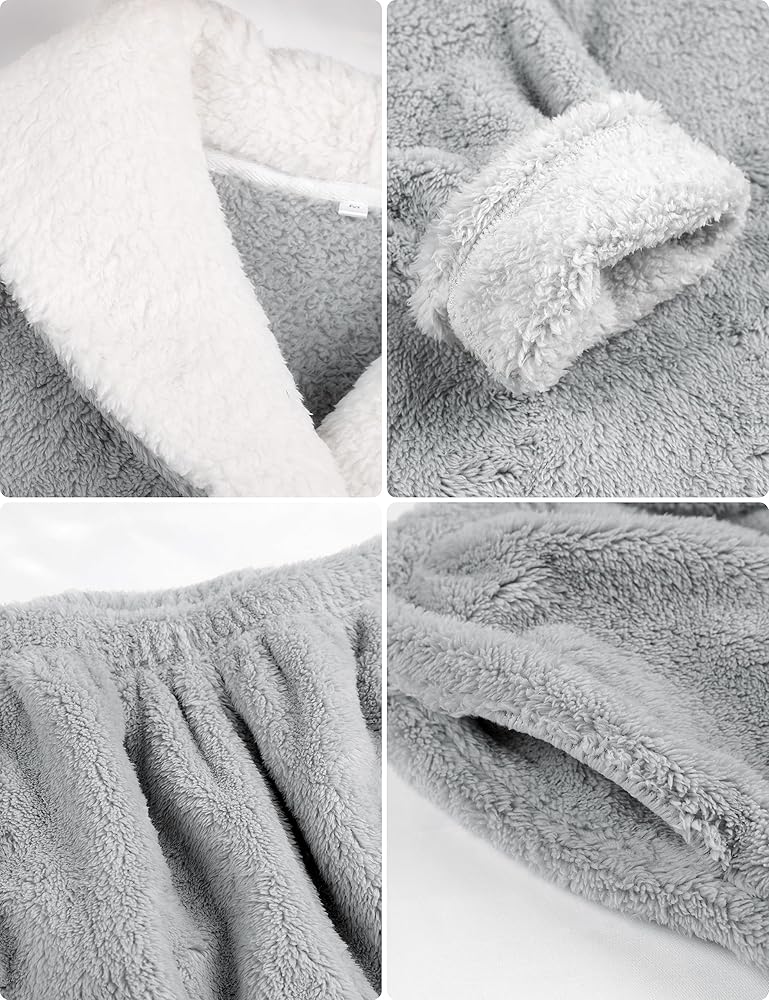 - Fuzzy fluffy loungewear set, Long sleeve pullover tops, Sherpa Fleece long pants with two side pockets