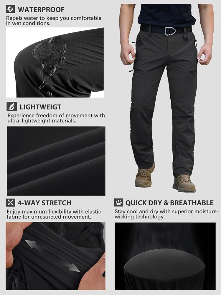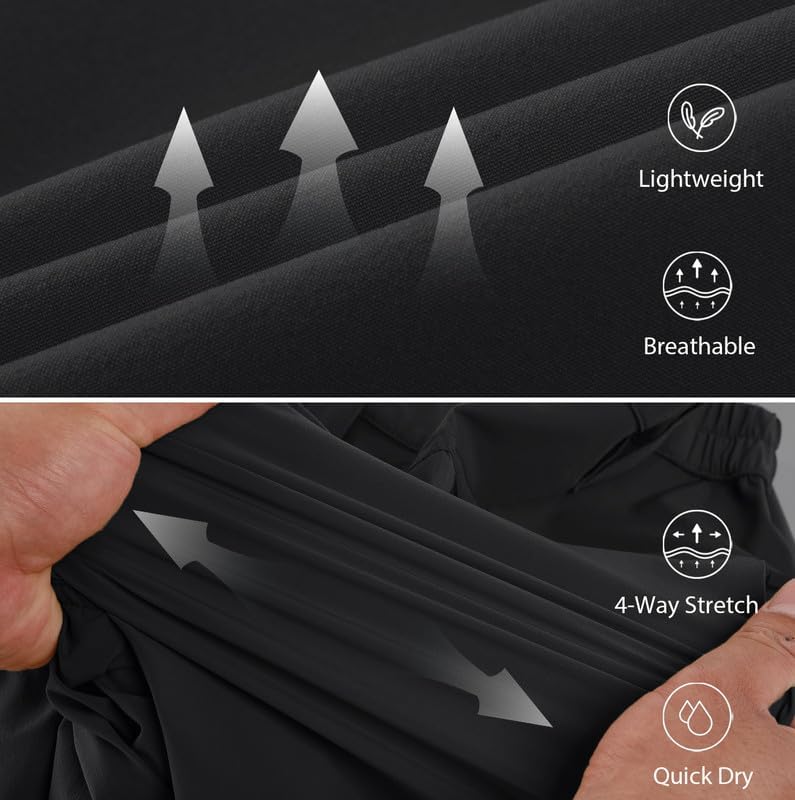 Material: Men's hiking pants are made of 88% nylon and 12% spandex, which are lightweight, quick dry, water-resistant and breathable fabric wicks moisture away from your skin to keep dry all the time.