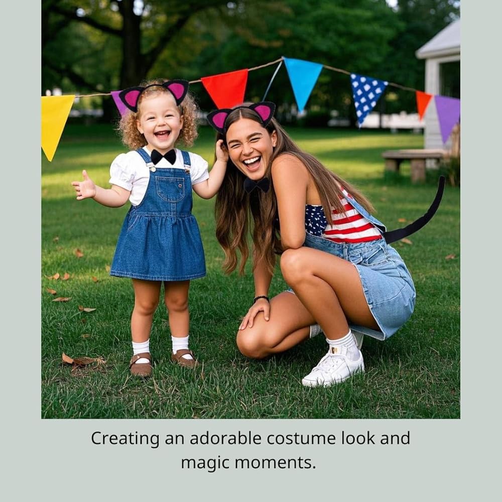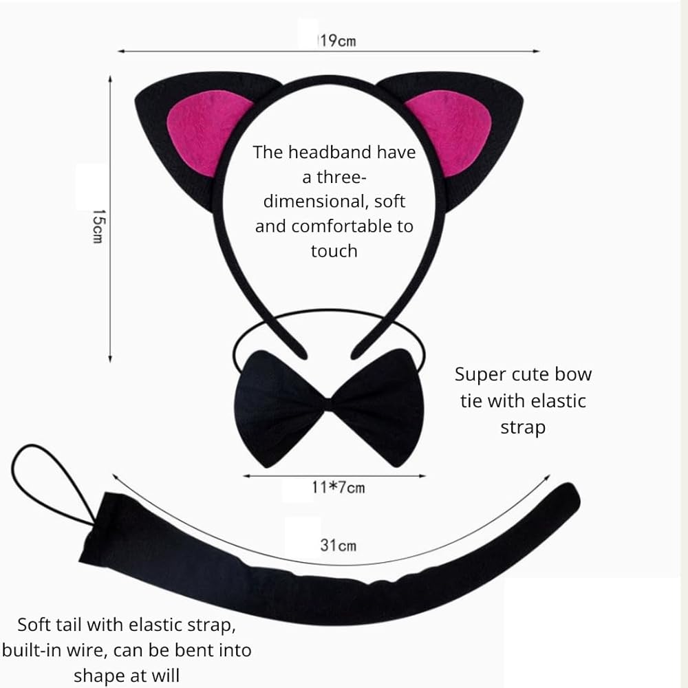 • Approximately Dimensions: Bowtie: 4.9"x3.7"; Tail length: 13"; Ears Headband length: 13"-13.7". Great costume set for themed birthday parties, Halloween, Christmas, Easter, New Years Eve and School Play