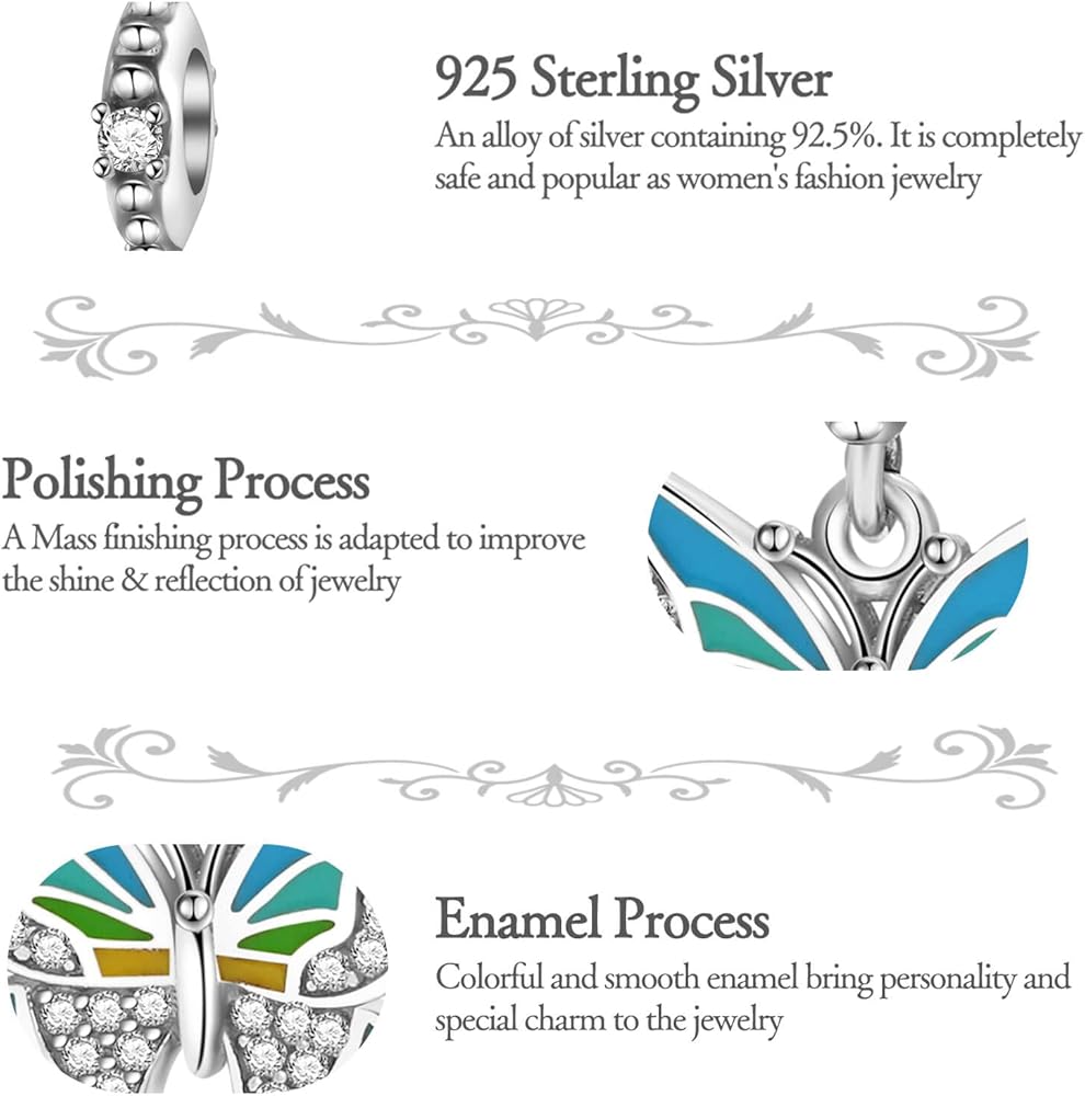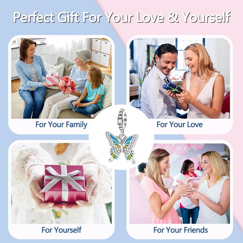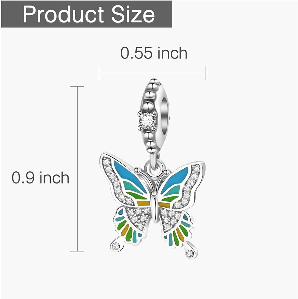 Unique Design: Colorful Butterfly Dangle Charm. Embrace spring renewal and the season of transformation with our Colorful Butterfly Dangle Charm. Sparkling clear cubic zirconia gives depth and dimension to the butterfly's wings. Carrying spring breath with you wherever you go.