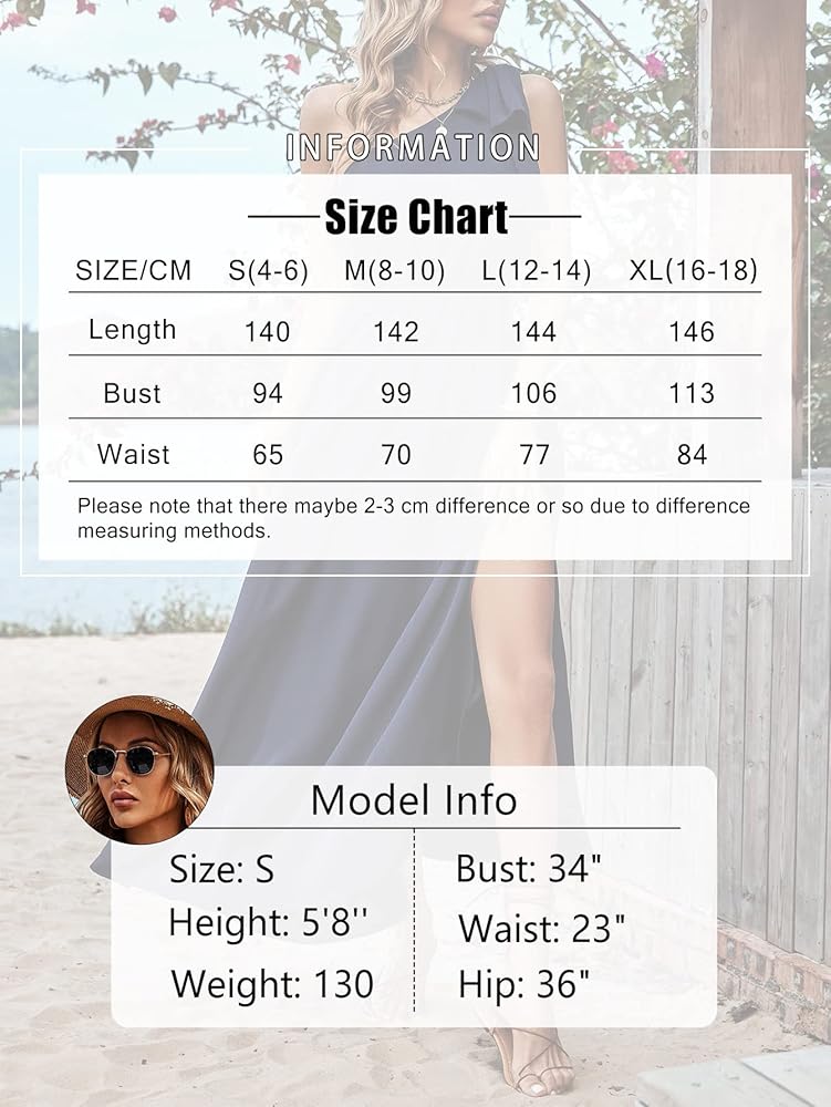 【Size】The US size of the one shoulder dresses for women is as follows: Small=US(4-6), Medium=US(8-10), Large=US(12-14), X-Large=US(16-18). Please refer to the size chart or the description on the detail page for more information.