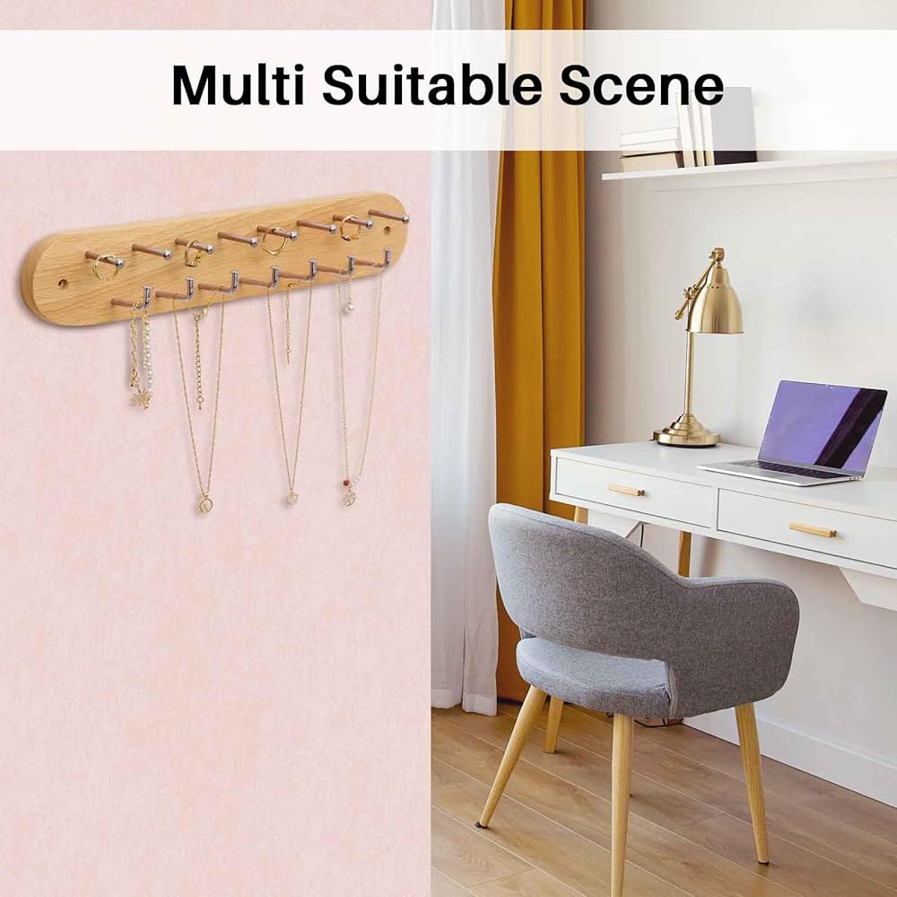 Hanging Jewerly Organizer for Wall, Wall Mounted Necklace Holder, Rubber Wood Wall Mount Jewerly Organizer for Necklaces,Headband and Bracelet, Nice Gift for Woman