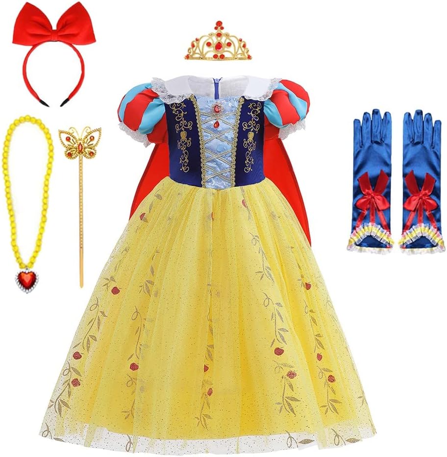Puff Sleeve, Color Block, Tulle/Lace Spliced, Bow knot Decor, Snowflakes Hemline, Zipper closure, with Cloak, Accessories, etc.