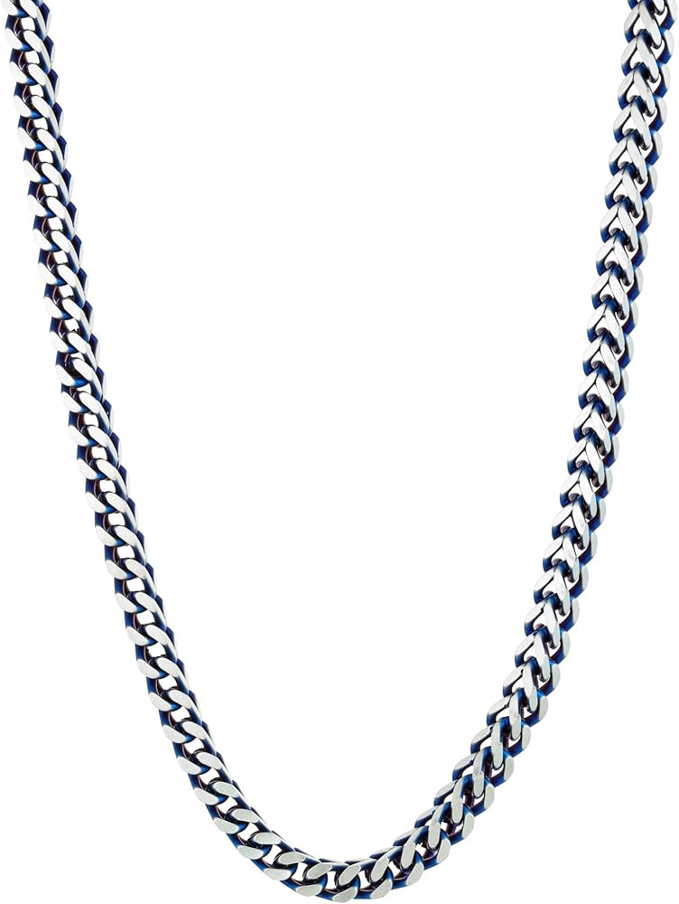 • ESSENTIAL AND ELEGANT MEN'S CHAIN NECKLACE - Incredibly crafted in stainless steel with blue ion plating, this 5 mm wide and 24 inches long foxtail chain necklace secured with lobster claw clasp is a special set that will reflect your unique and fashionable personality. Our chain necklace is a classic way to accessorize any formal or casual look