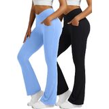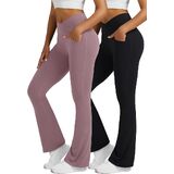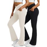 Flare Leggings for Women with Pockets 2pack High Waisted Crossover Flare Leggings Bootcut Yoga Pants