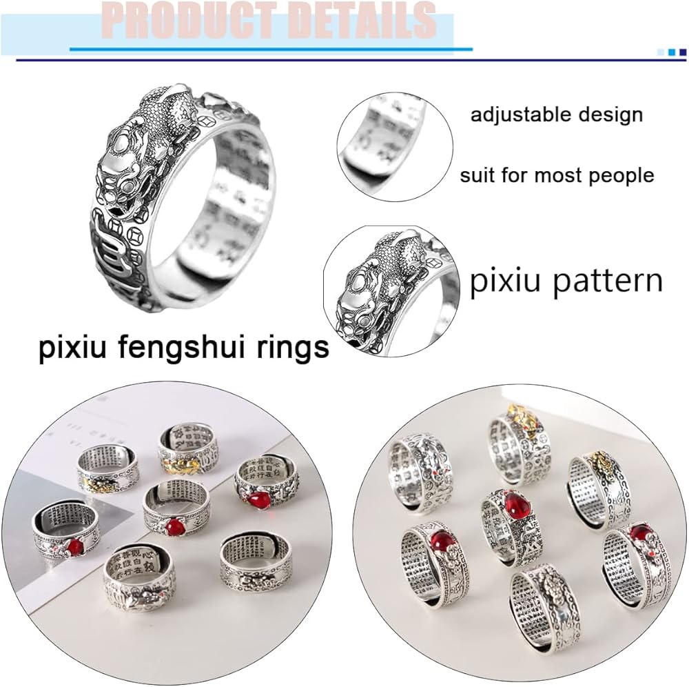 Quality&Suitable Size:Exquisite and unique Pixiu ring are made of alloy material, comfortable and smooth to wear, sturdy and deformation resistant,rings width:8-9mm,adjustable design,don't need to worry size ,suit for most people.