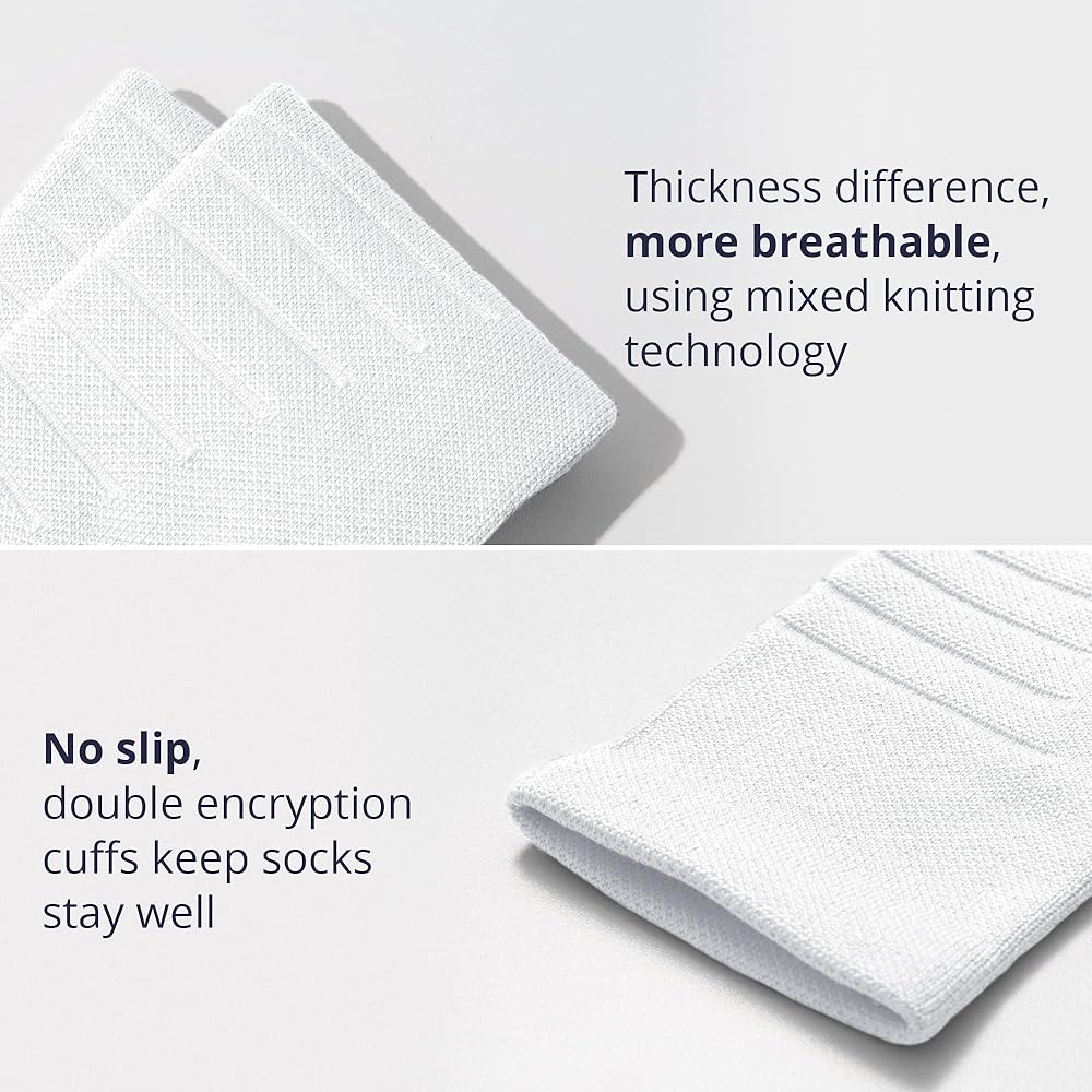 【Seamless integrated molding:】 Imported Italian machines are used to stitch the toe seamlessly. This allows the sock to wrap your feet in comfort while reducing friction. The height of the sock and the double-layer design of the top prevent socks from slipping down and stretching out of shape.