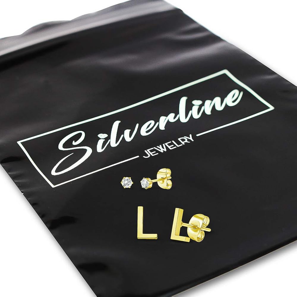 Includes: 2 pairs of earrings. You will receive a set of two letters and two Cz stud earrings (4 earrings total)
