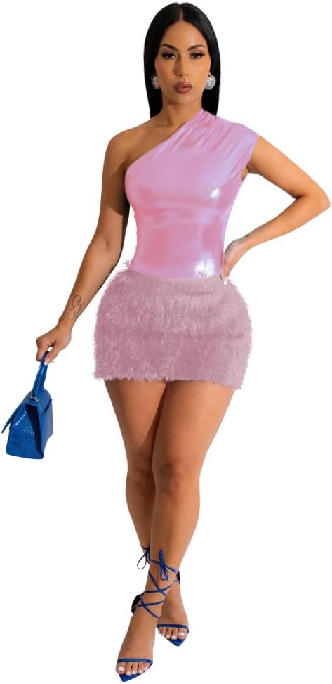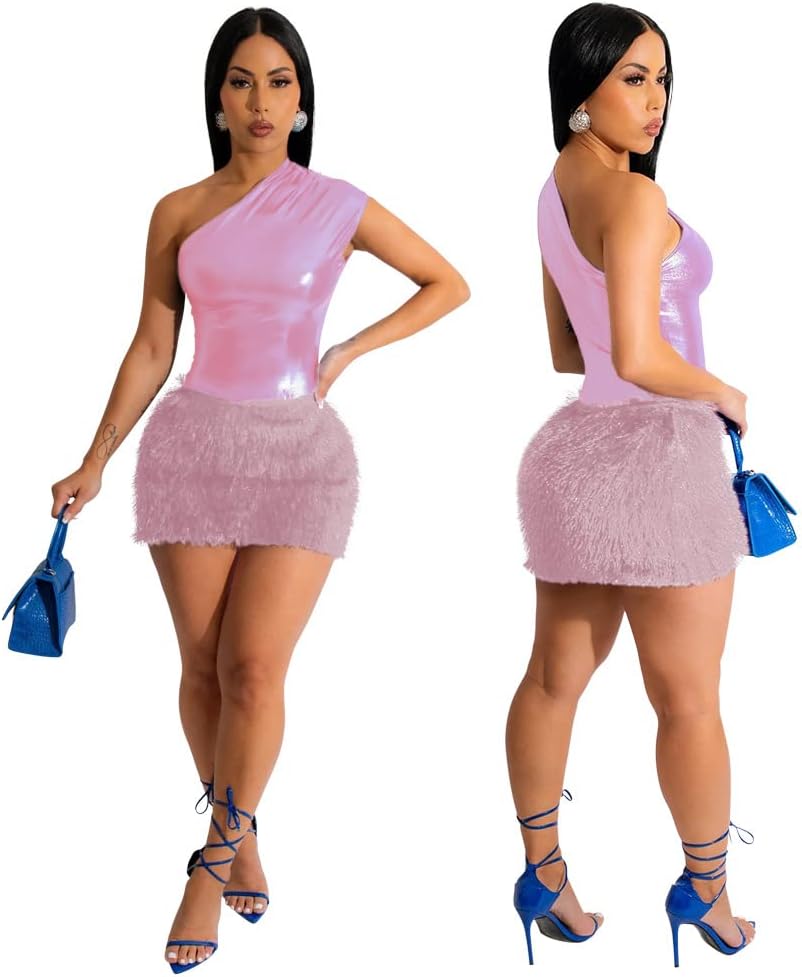 Women Sexy One Shoulder Sleeveless Tank Tops Bodysuit Mini Skirt Two Piece Sets Party Club Outfits
