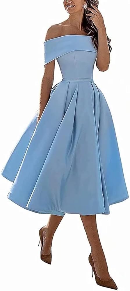 Knee-Length Satin Off Shoulder Homecoming Dress Short Prom Cocktail Party Dress for Junior