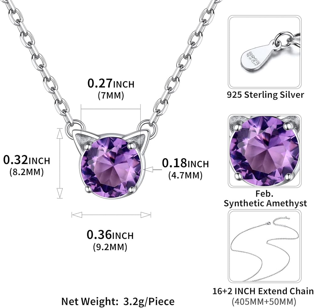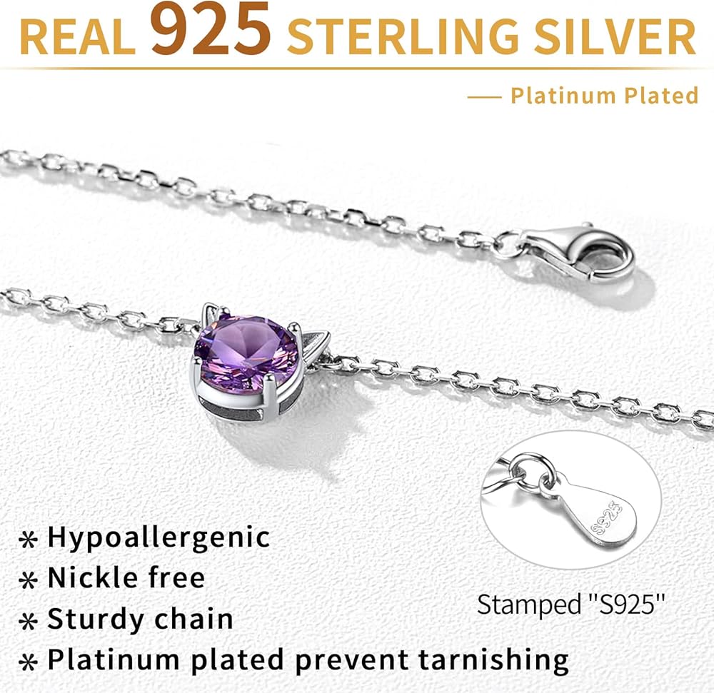 HIGH QUALITY - Made of hypoallergenic platinum plated sterling silver, high quality simulated amethyst, allergy free, nickel-free, lead-free, these sterling silver cat pendant necklace are safe for sensitive ears. Ideal jewelry for girls, teens, women of all ages !