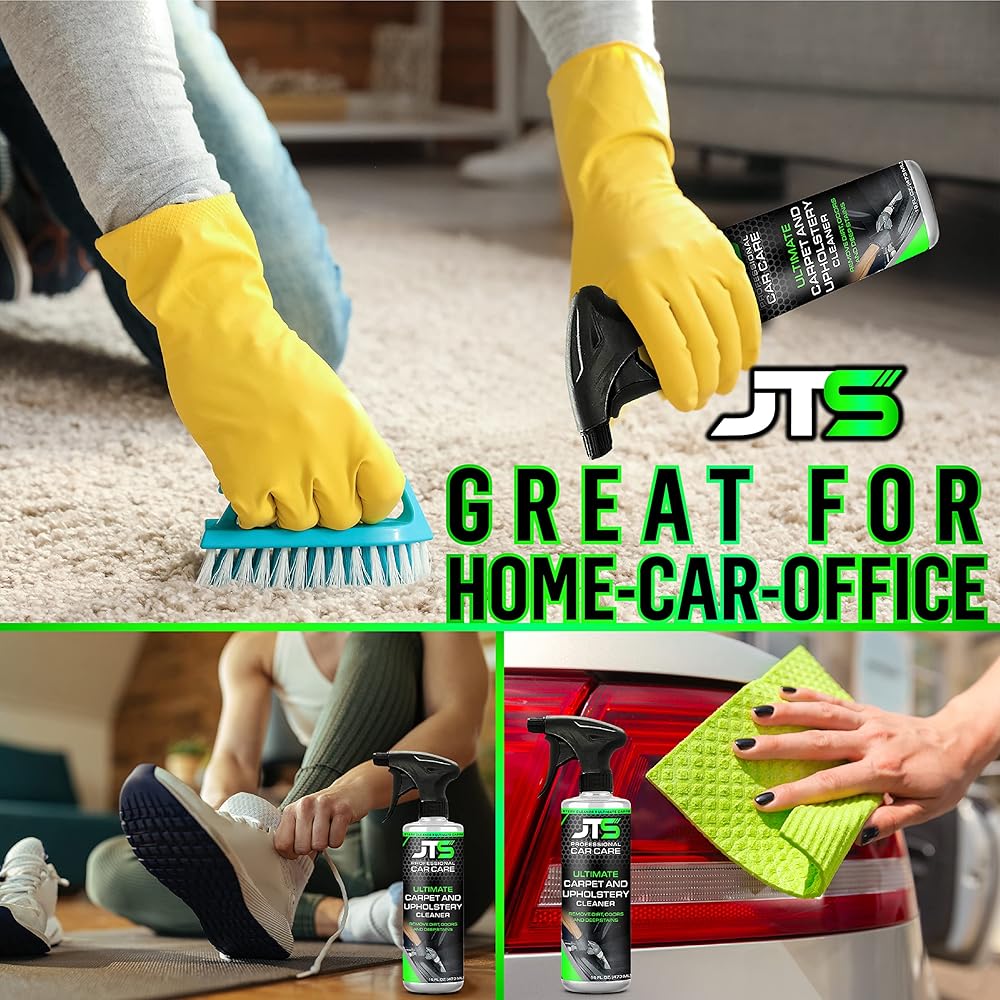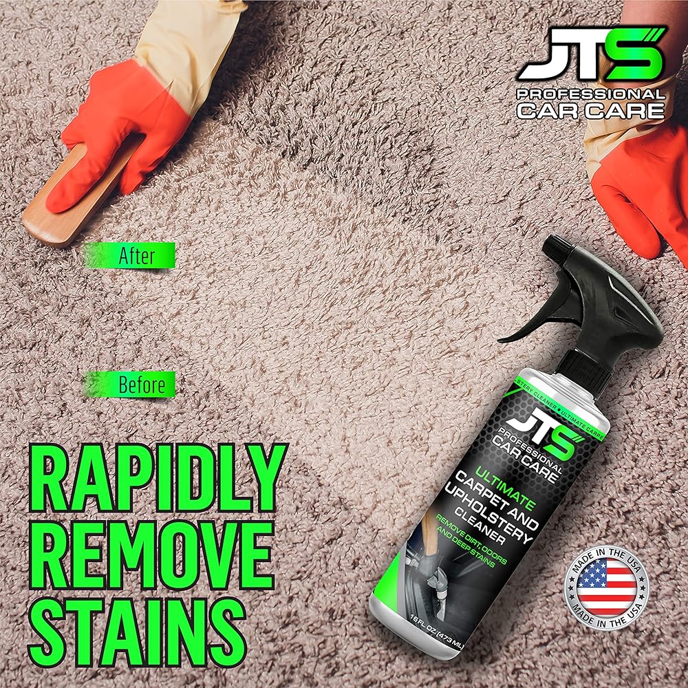 ✅* The best carpet and upholstery cleaner on the market. Removes dirt, Odors, and deep stains with expert detailing results; use JT's Carpet and Upholstery cleaner to penetrate deeply into fibers and release foaming bubbles that dissolve and remove embedded dirt, odors, and stains from vehicle carpets, fabrics, and upholstery. This effective blend of cleaners and surfactants helps remove stubborn stains and restore your vehicle's carpets and upholstery to a like-new look.