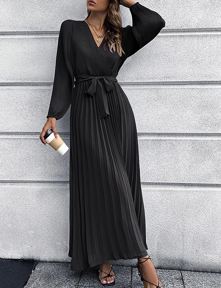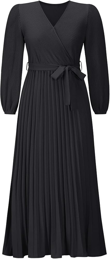 ✦Material: This Women's V Neck Pleated A-line Dress is made of smooth, soft and lightweight polyester material, which is stylish and formal with Pleated design, V Neck,Midi Length,Slim Fit and more unique design.