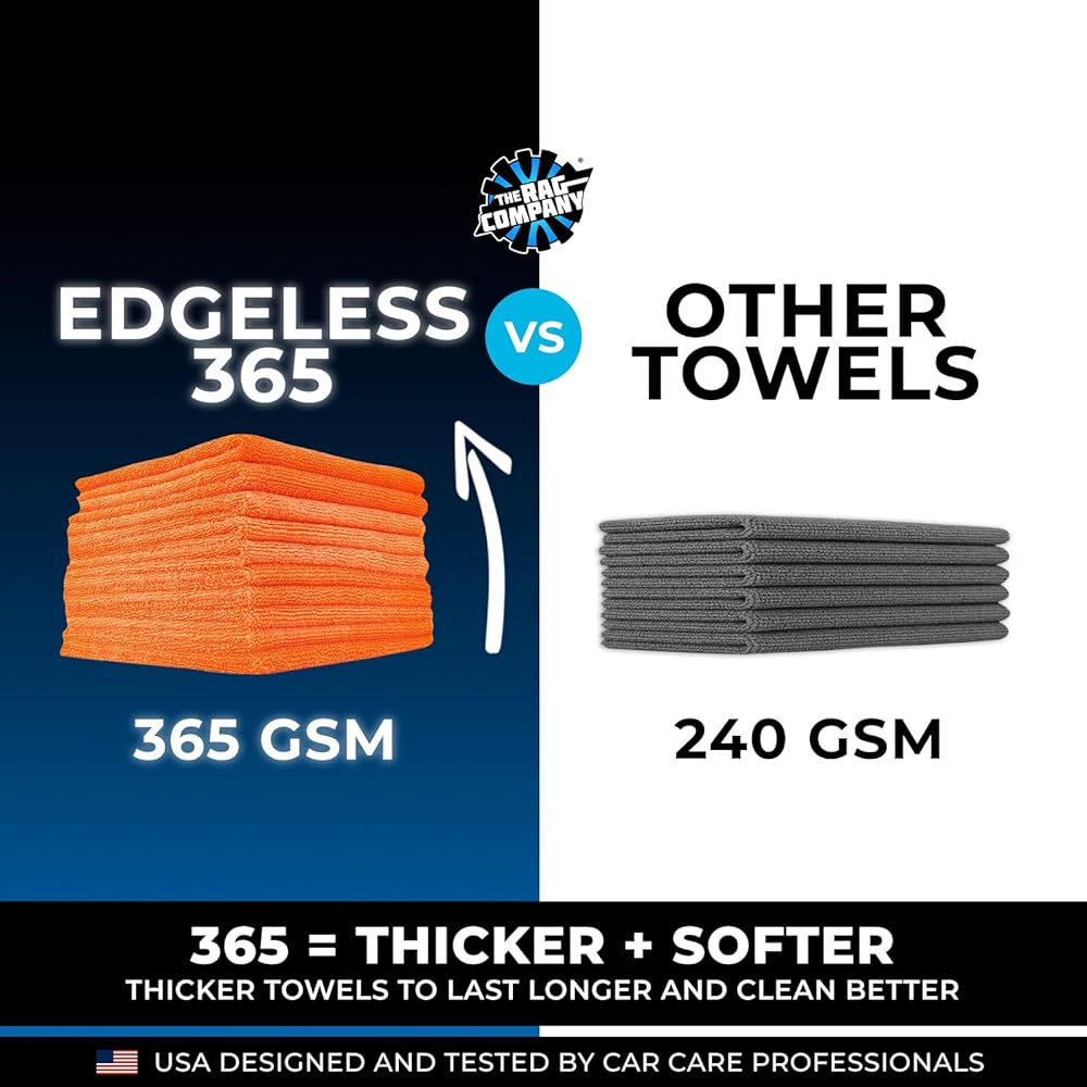 ☑️ PREMIUM EDGELESS, TAGLESS 70/30 Blend 365gsm Professional Microfiber Polishing Towel With Over 380,000 Fibers Per Square Inch That Deliver a Scratch-Free / Swirl-Free Finish Through Hundreds of Uses