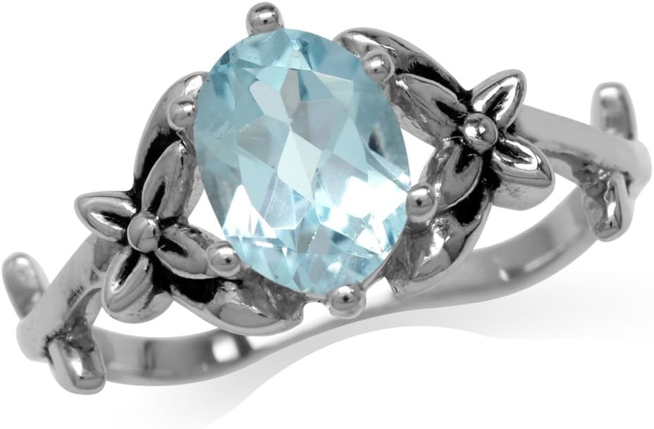 Silvershake Birthstone Gemstones 925 Sterling Silver Flower and Leaf Vintage Inspired Ring Jewelry for Women
