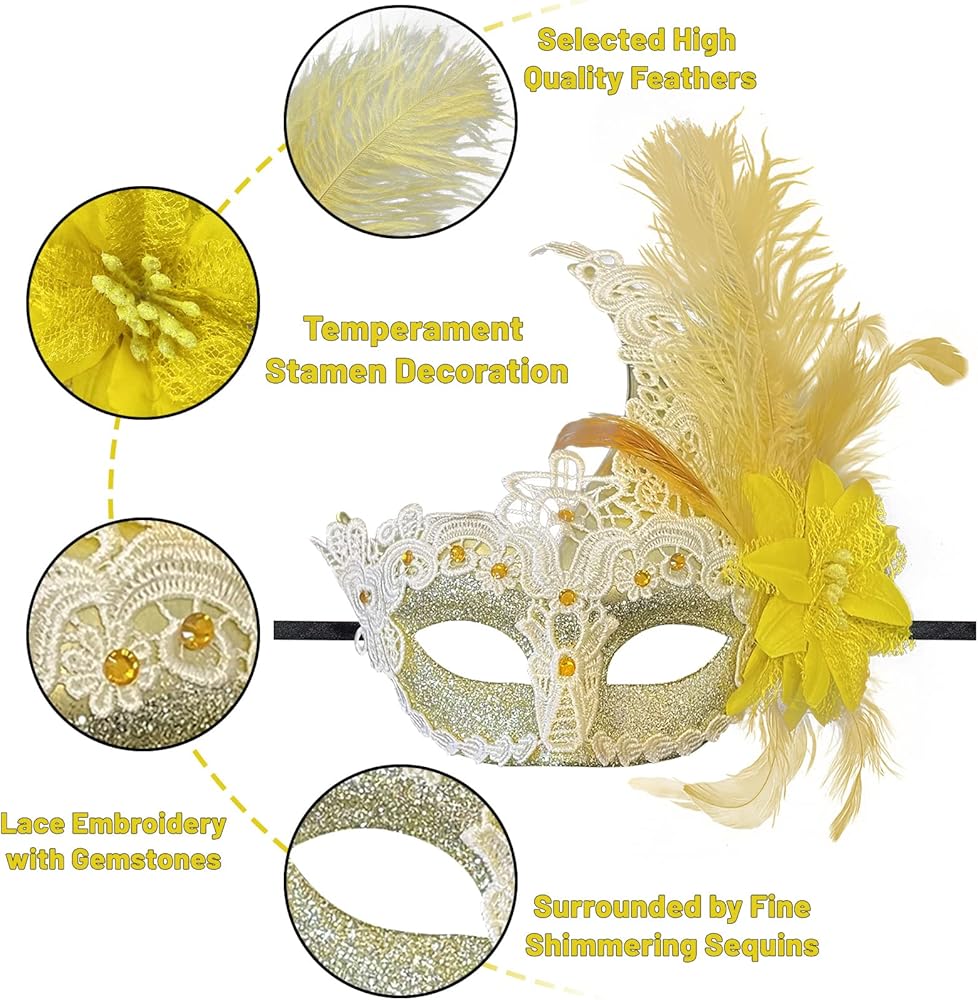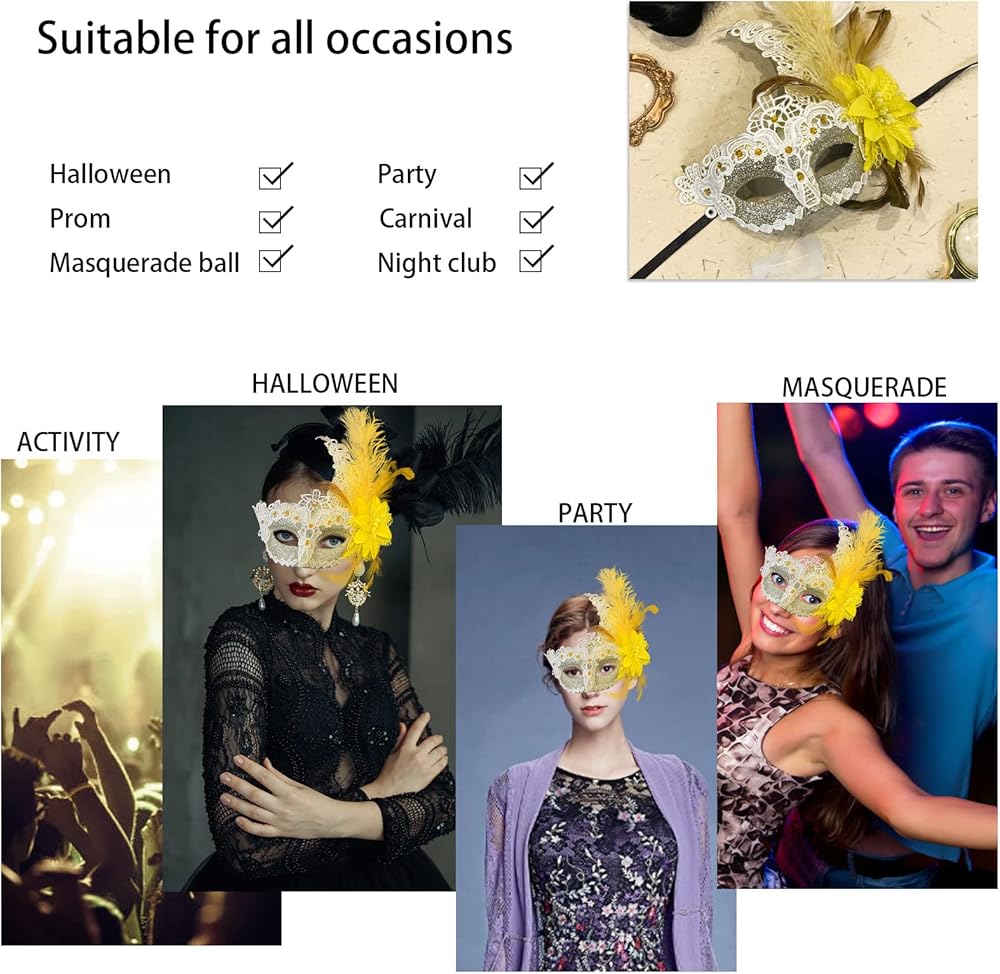✨【Comfortable】: One size fits most. Masquerade mask feather is very sturdy, the feathers don't fall, comfortable to wear even for long periods of time. A gorgeous feather masks masquerade ball and the perfect party outfit to match to boost your confidence and charm, and you'll be the center of attention!