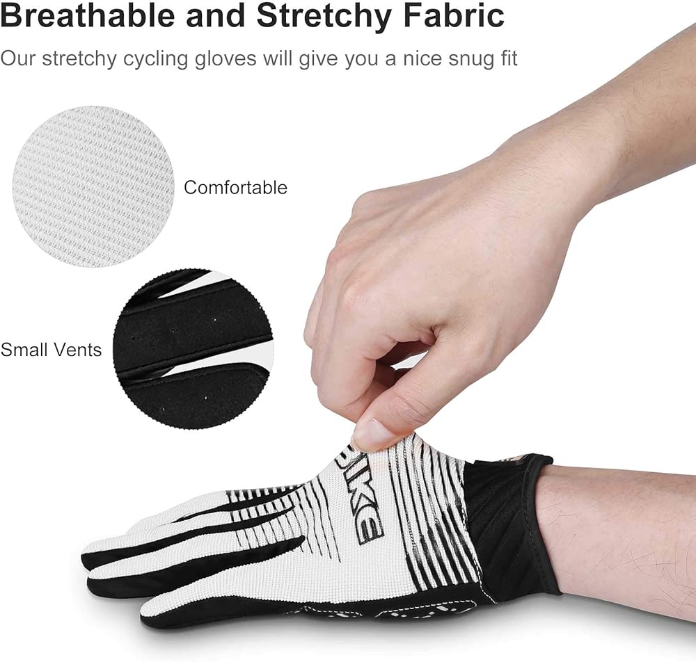<b>Breathable and Stretchy Fabric</b><br>The back of our cycling gloves is used 76% polyamide, 13% polyurethane and 34% spandex. The spandex offers the high elasticity. Our stretchy cycling gloves will give you a nice snug fit when you are riding a bike. And small vents which are designed on the fingers allow the fresh air to enter for keeping your hands cool and dry effectively.