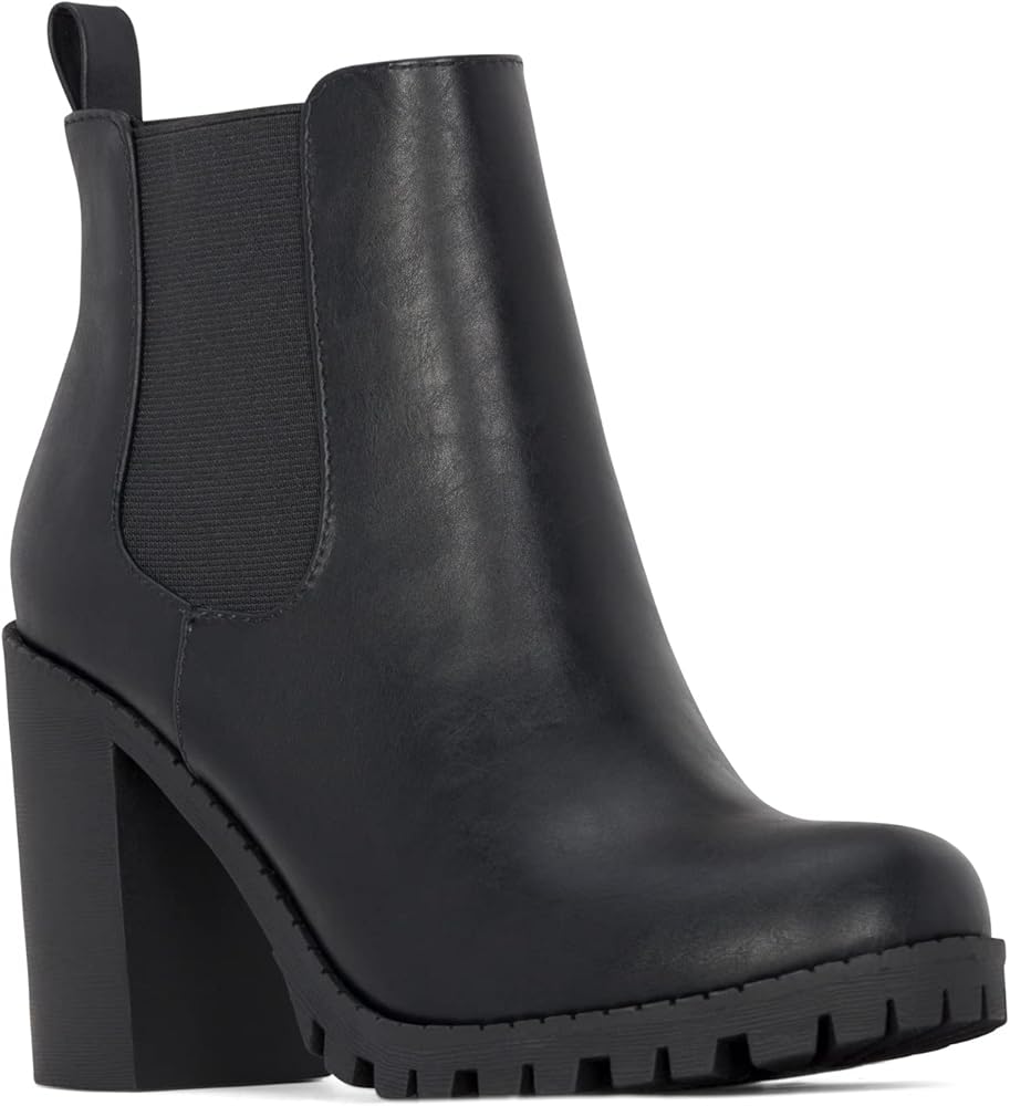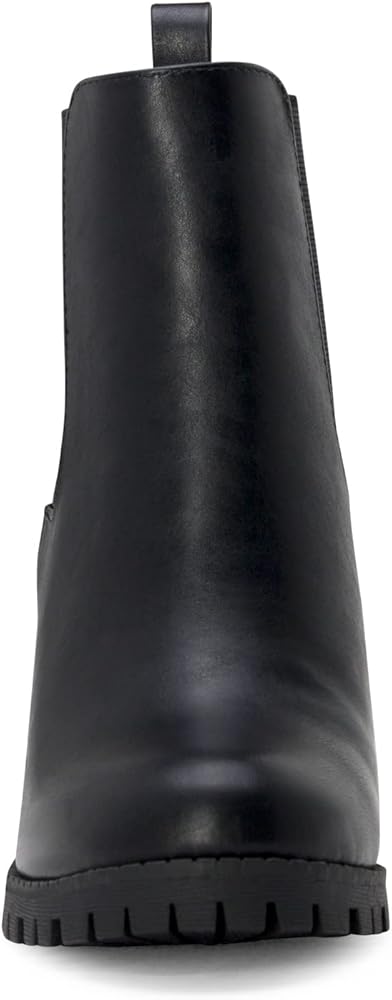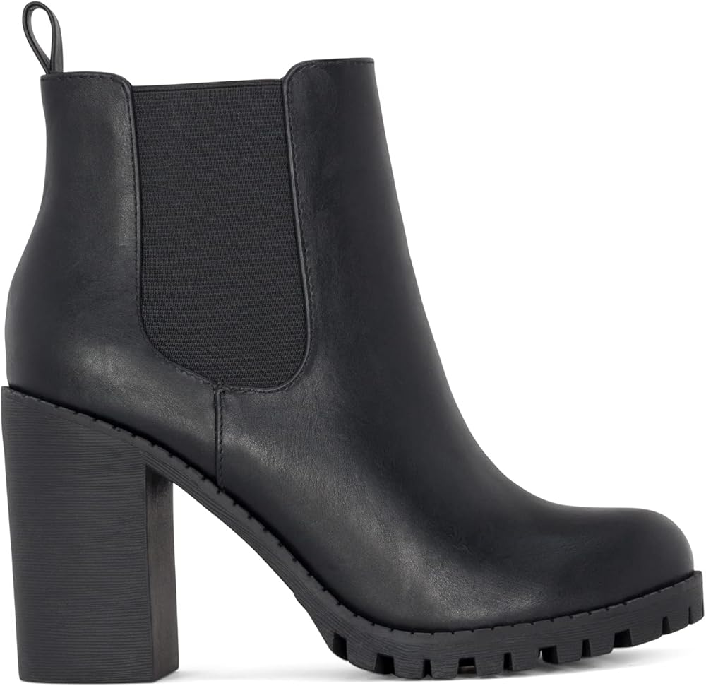 Cynthia - Women's Closed Toe Elastic Chelsea Boot W/Chunky Lug Sole Heels