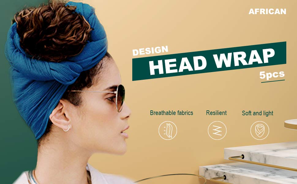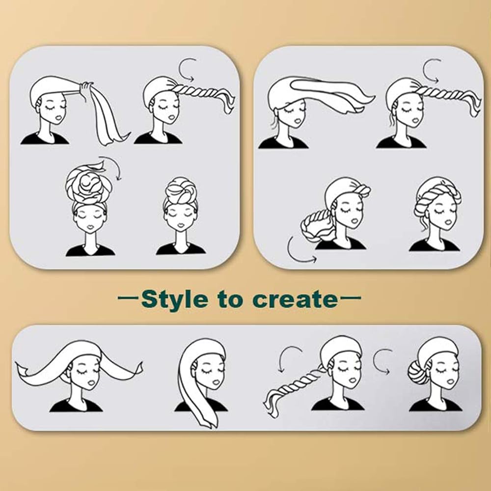 💖 Fast and easy operating 💖 The length of the turban is 70.9" and the width is 33.5". The stretchy headwrap can easily wrap hair of different lengths, whether it is long curly hair, braids, dirty braids, hanging hair, etc., can be easily fixed and combined Complete different shapes.