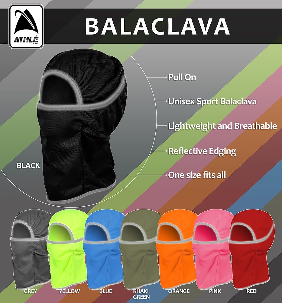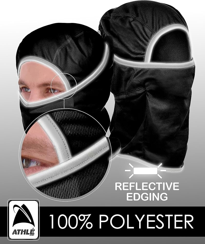 Do your thing in the great outdoors anytime, anywhere with Athlé! Our balaclava face mask women and men is lightweight and breathable and designed with an easy pull on feature. Our sport and snowboard balaclava fits snugly around your head, face and neck. Suitable to use all year round, our women and men's balaclavas are breathable, absorbs sweat and fits perfectly under hats and helmets to keep you dry, warm and comfortable, all day long. Advanced reflective properties and easy to wear design make this a must-have accessory for any person that needs a protective layer while doing any outdoor activity!