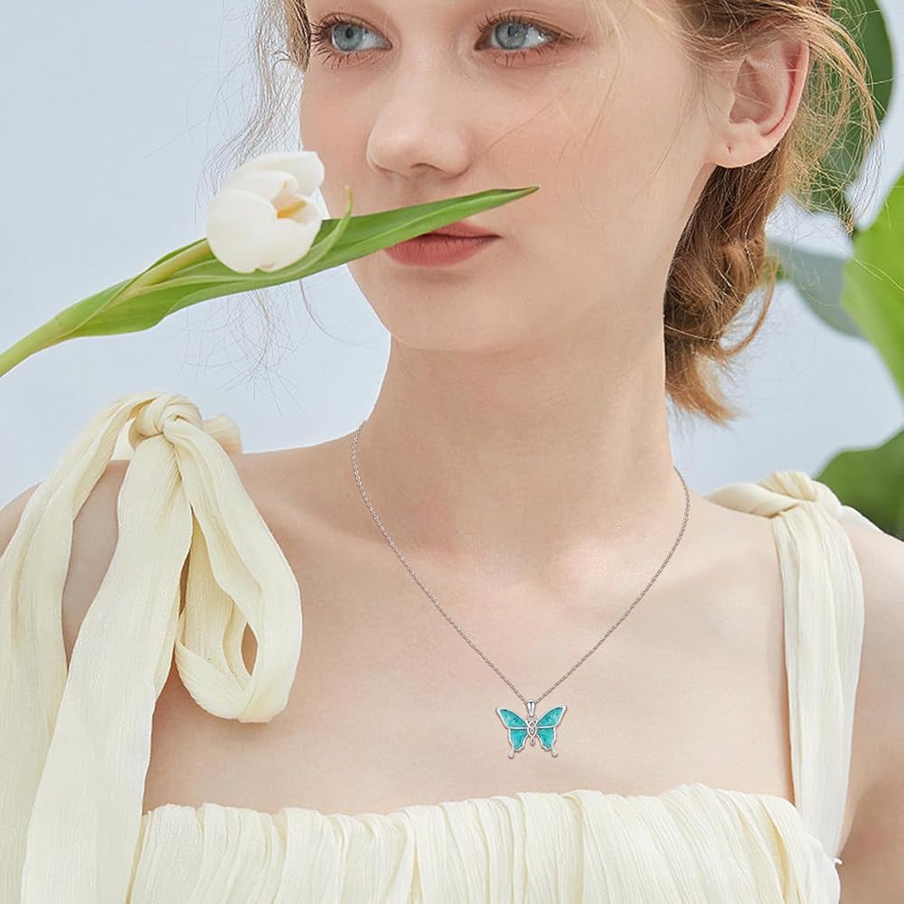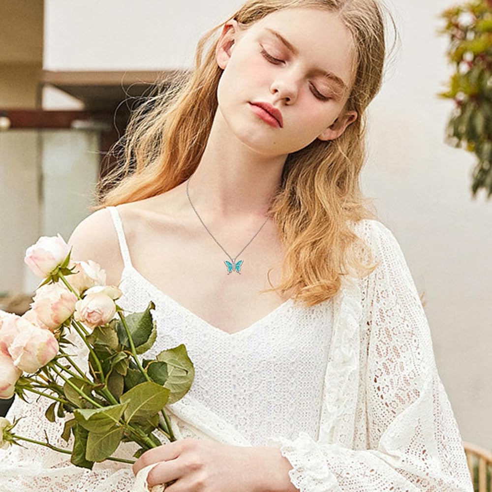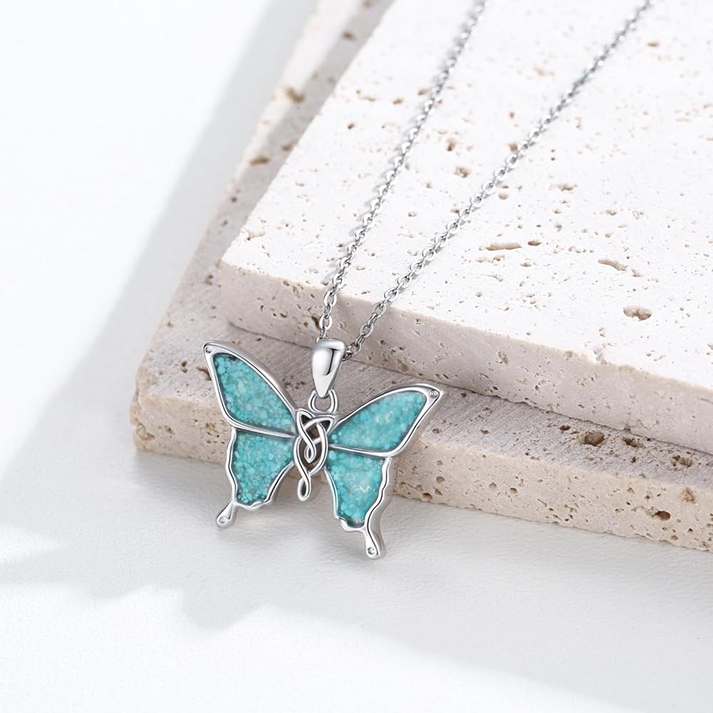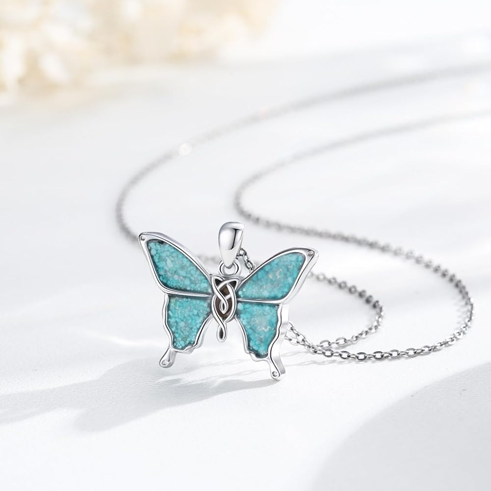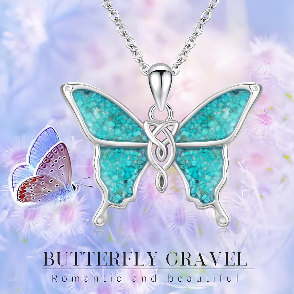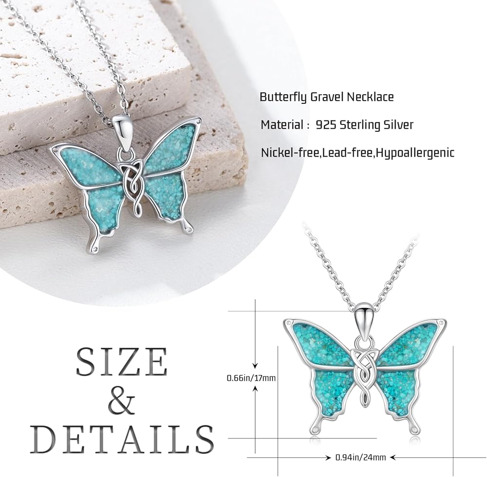 S925 Turquoise Crushed Stone Necklace:Butterfly necklace is made of hypoallergenic S925 sterling silver, nickel-free, lead-free, cadmium-free, especially suitable for those with sensitive skin.