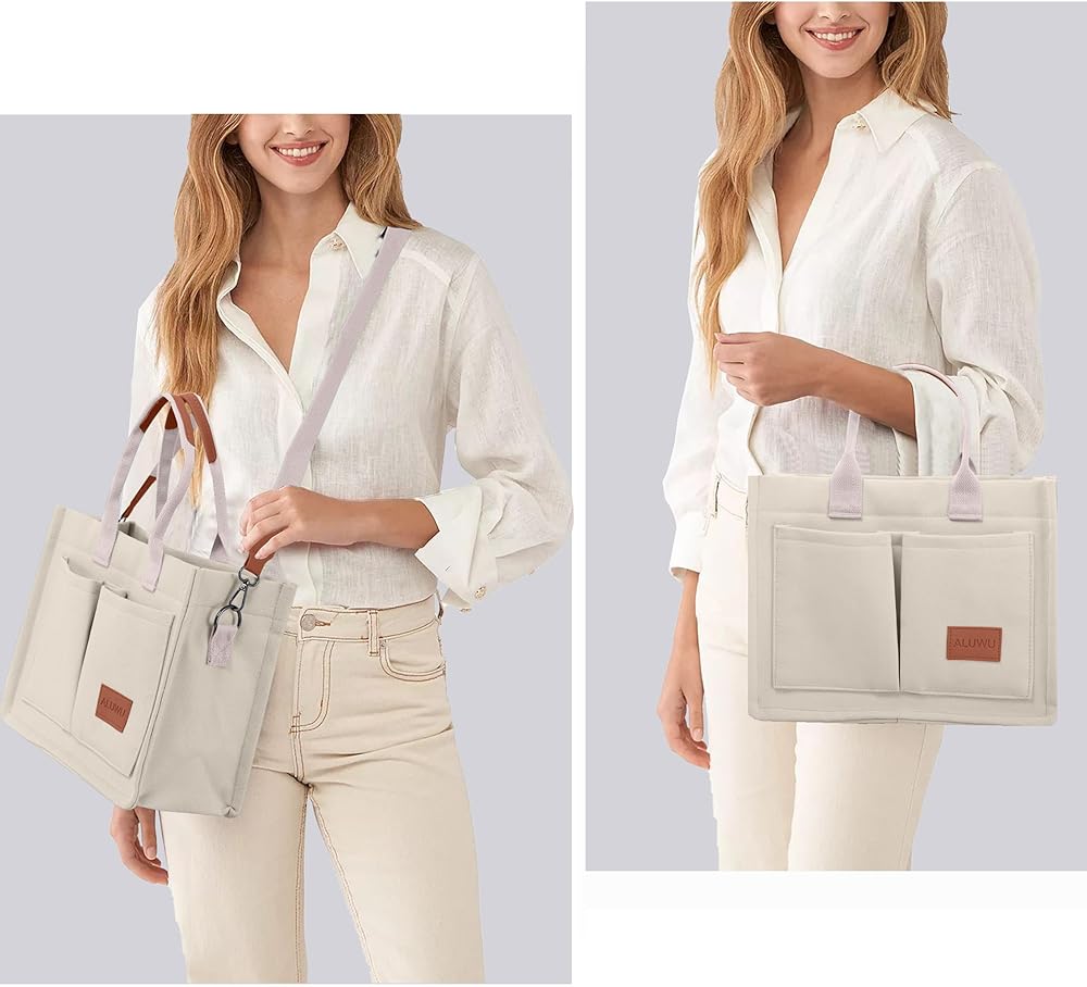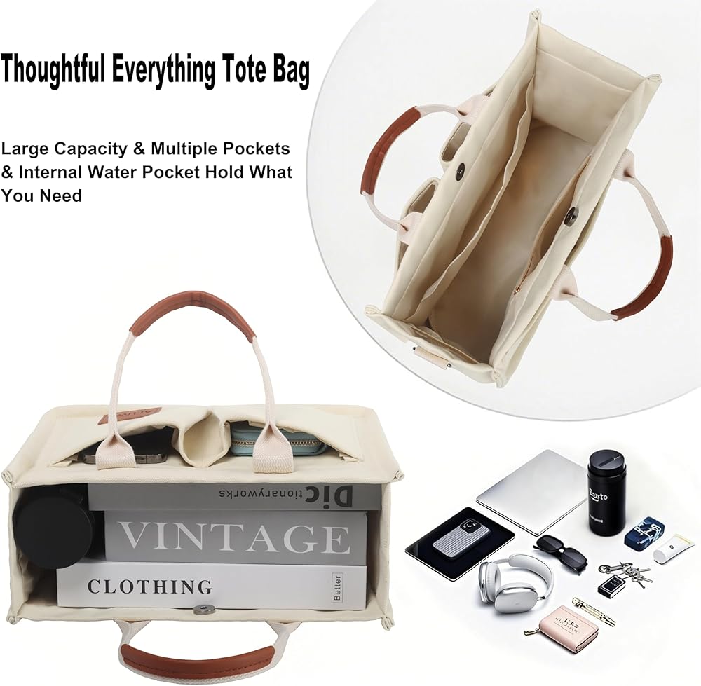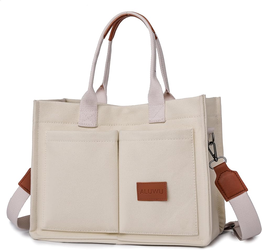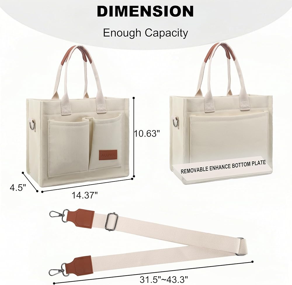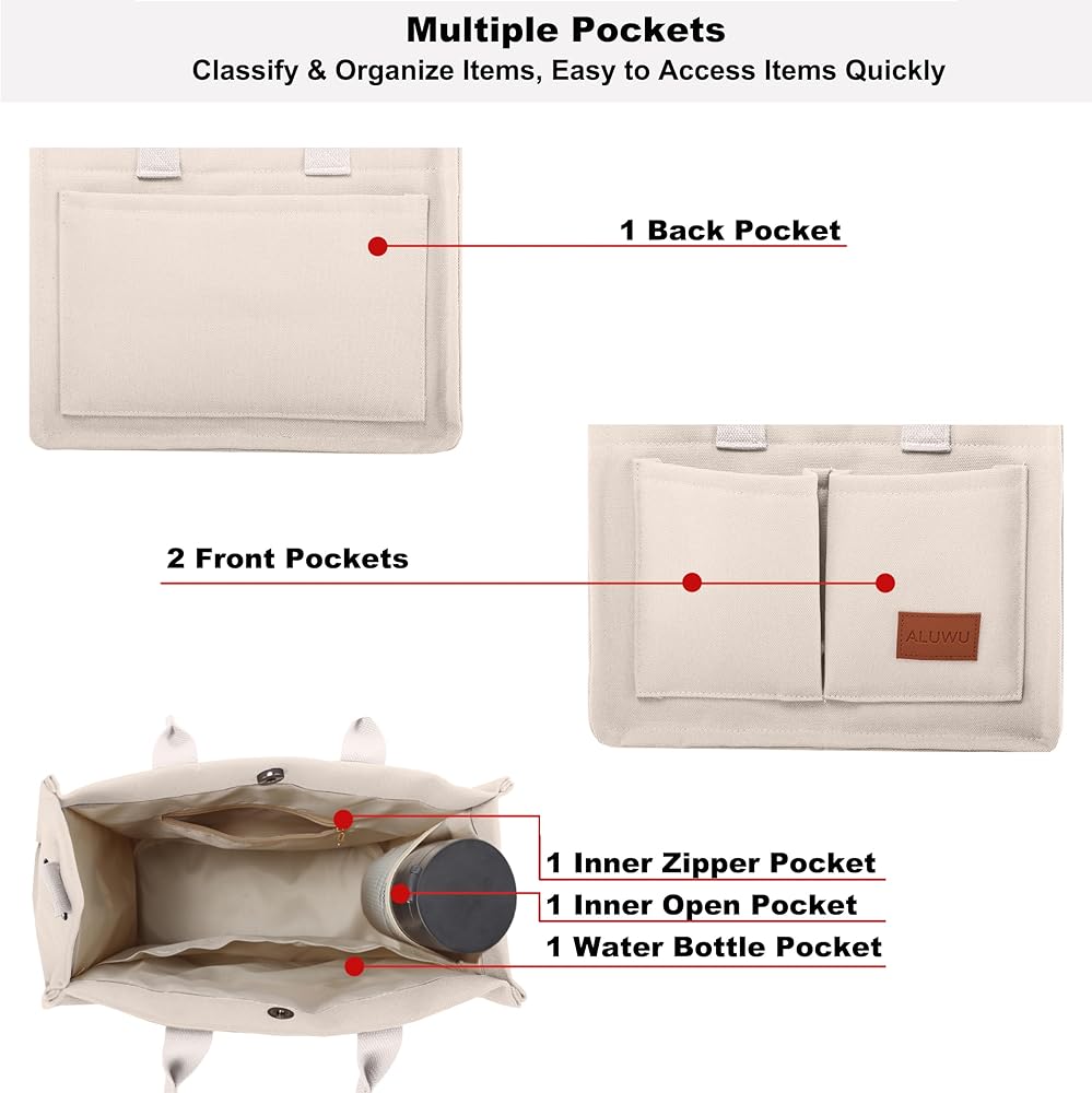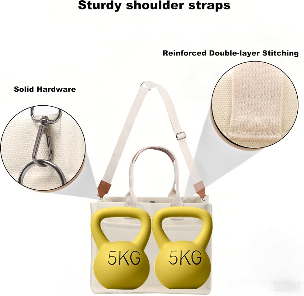 【Material】 Made by high quality Canvas, super sturdy, soft and water-washable. Can be the essential everyday tote bag. Feels softer, skin-friendly when your hand touch it. 【Canvas Shoulder Bag Dimension】 Korean canvas tote size is L 13.4*W 4.7*H 11.8 inch. And canvas bags size is L 14.9*W 4.4*H 12.6 inch. The space of this tote bag is big enough for all of your daily stuffs. You can easily carry your kindle, laptop, ipad, cellphone, binder, book, magazine, passport, keys, wallet/purse, pencil, charger, card, A4 papers, water bottle, makeup and sunglasses insideand so on. 【Canvas Purse Structure】 Have 1 main compartment and 2 internal open slot pockets. Strengthen the stitching so that the straps and bags are more firmly connected. On the top closure of the bag are 2 snap fasteners and 1 magnetic buckle. Comfortable and elegant in opening and closing of this bag. 【Occasions】 Canvas Handbag are suitable for office, business/quick grocery/bookstore trips, dating, weekend, gift, birthday, anniversary, graduation, college, school, beach, diaper bag, travel bag and more. . It is lightweight and very convenient to carry all your everyday items. 【NOTE】 PLEASE CONFIRM THE SIZE BEFORE YOU ORDER! If you have any questions, please contact us first, we will try our best to solve your problem. Our products undergo a rigorous quality inspection, If you are dissatisfied, please contact us, we will try our best to solve your problem.