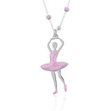 Adorable kids sterling silver ballet ballerina dancer pendant charm necklace with real 3D tulle fabric material tutu dress and light pink peach color enamel bodice leotard and slipper shoes