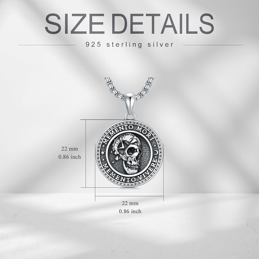 【Pendant Size】Memento Mori Pendant Size is 21.5mm/0.85inches height, 15.7mm/0.62inches width; Adjustable Chain Length: 22+2 inches extender. the Pendant is removable from chain.