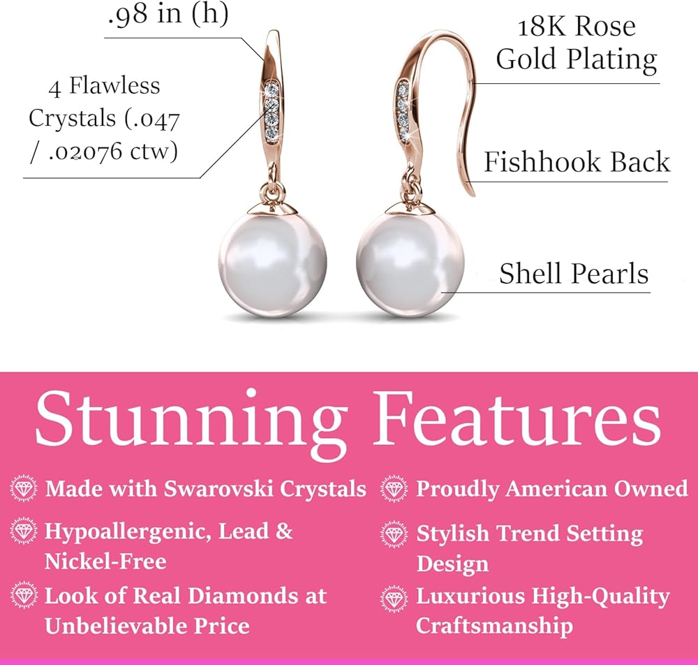 Cate & Chloe Betty 18K Gold-Plated Freshwater Pearl Earrings | Jewelry for Women with Crystals | Classic Pearl Drop Dangle Earrings for Everyday | Gift for Her for Christmas, and Anniversary