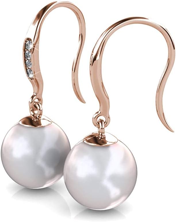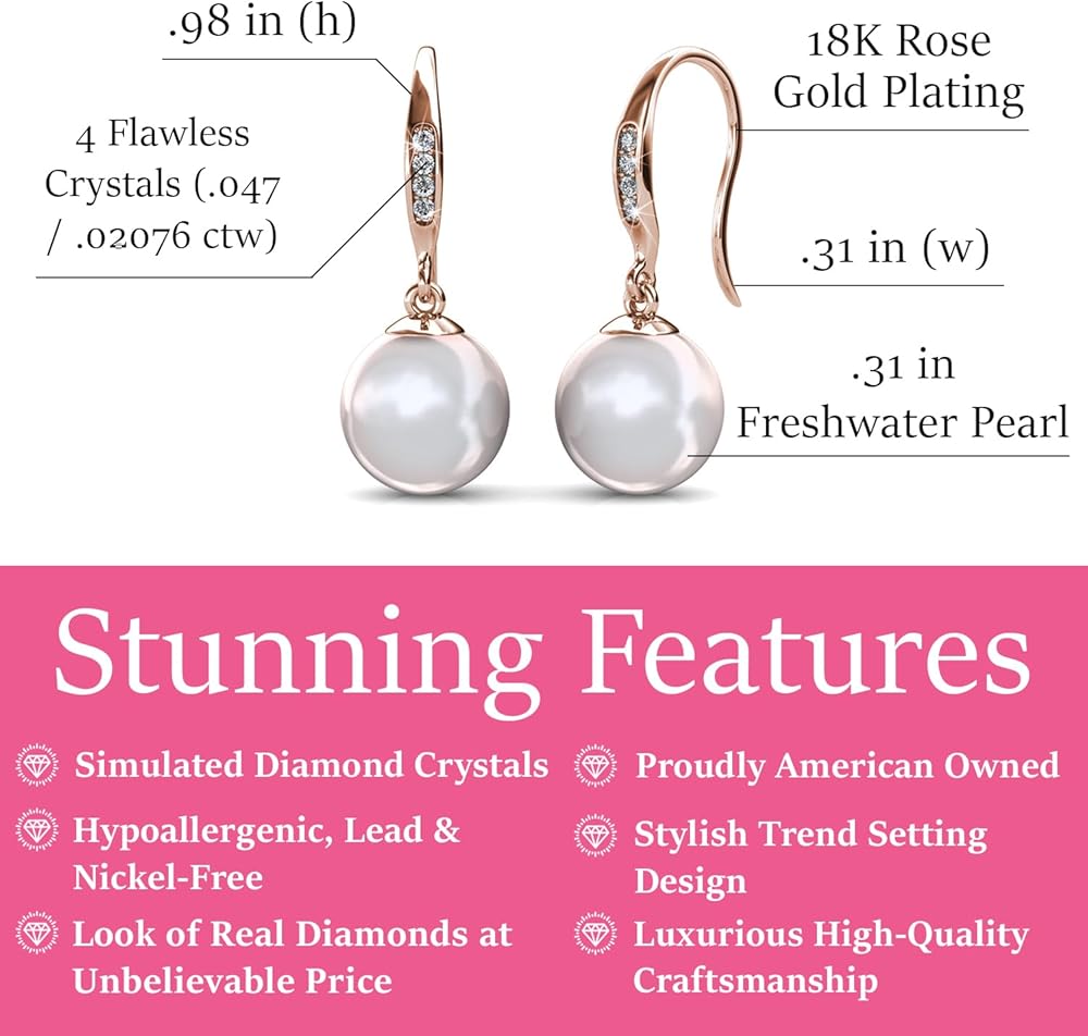 SIMULATED DIAMOND CRYSTALS - Our earrings are adorned with exquisite freshwater pearls and premium crystals. In a captivating round-cut design, these dazzling gems illuminate from every angle.