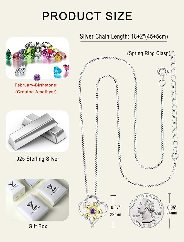 ❤️ YL DESIGN - This birthstones heart necklace with "white heart" represent “Pure and Simple”