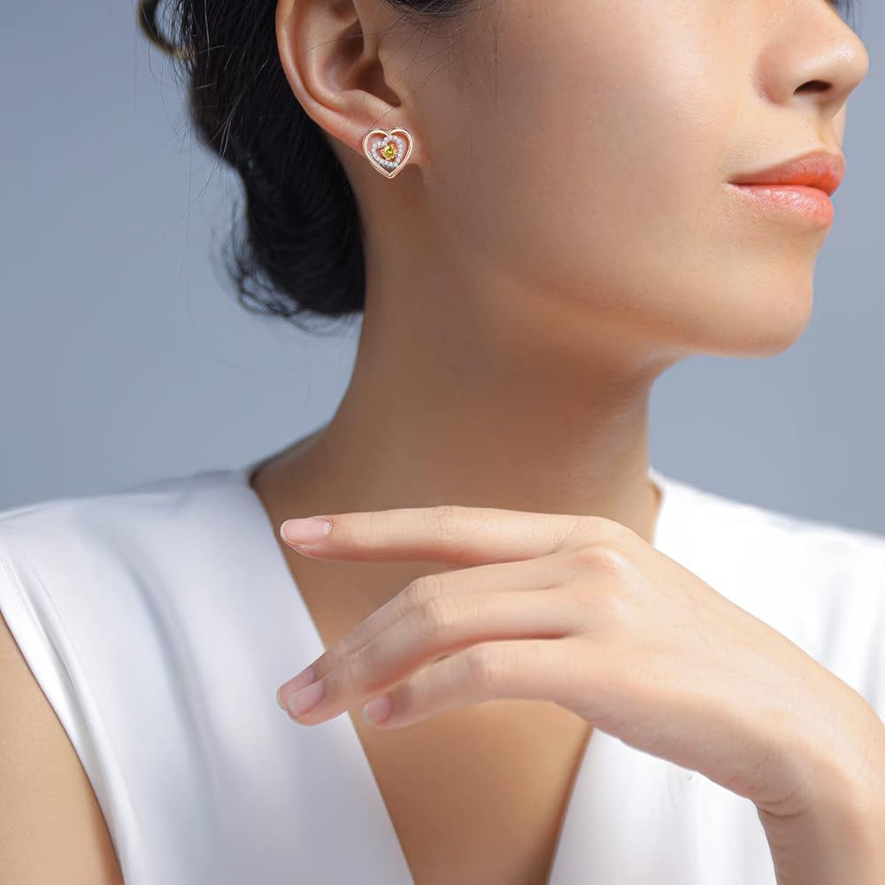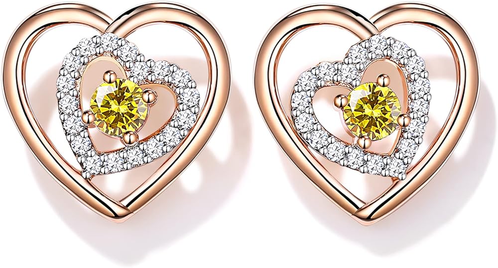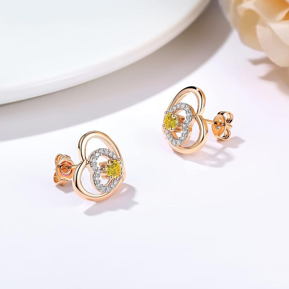 Original design by JD&P in California. The stud earrings set is designed as a unique symmetrical double heart structure, symbolizing love for each other. More than that, the details of the pendant are also full of love. The heart of inside, it is studded with a center main birthstone and circle of bling stones to indicate the importance of the recipient in the mind.
