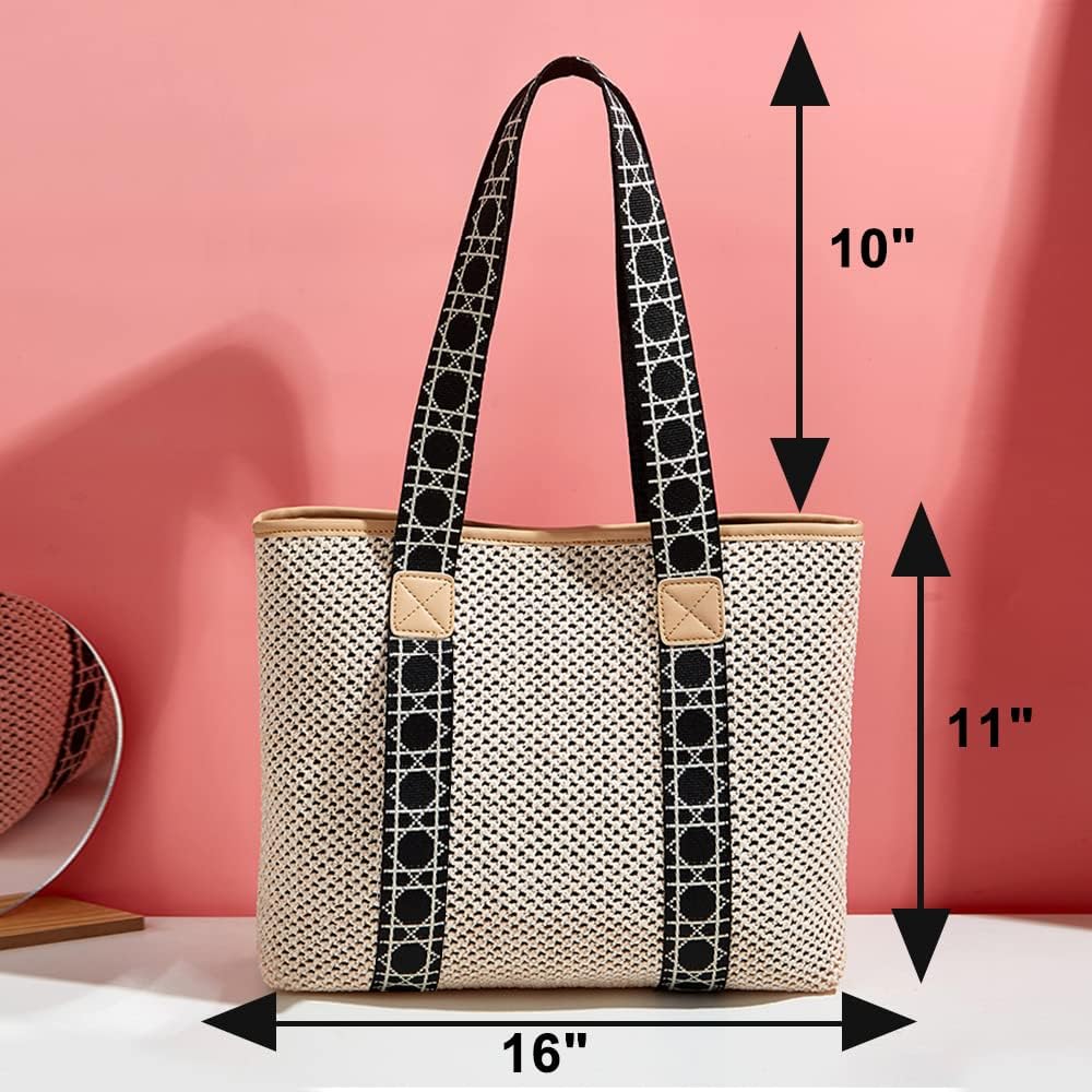 👜【Large Capacity】Hand-woven bag size: 11''x16'', shoulder strap size: 10''. A straw bag big enough for a swimsuit, flip flops, drinks, accessories, makeup and everything you need for a day by the sea or vacation. Features interior slots and a zippered pocket for keys, cards, lipstick and more