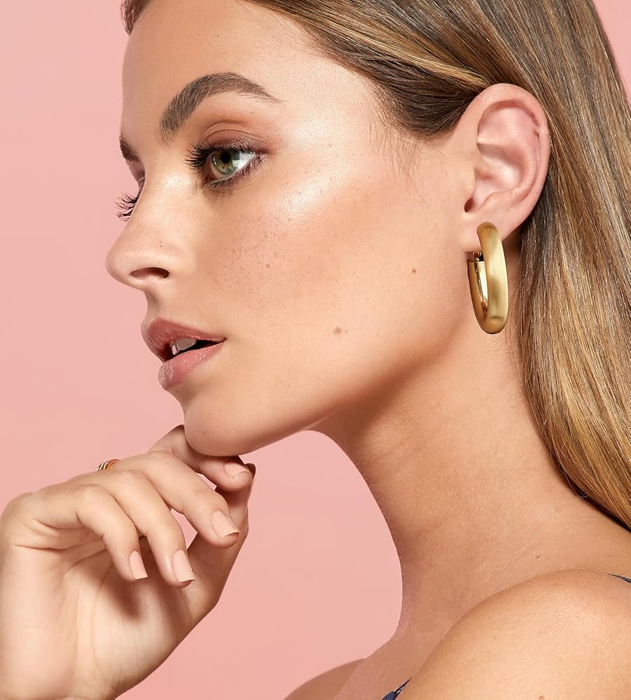 CHIC DESIGN - These gold hoops feature chunky hoop design, deliver style and grace with these intriguing hoop earrings.