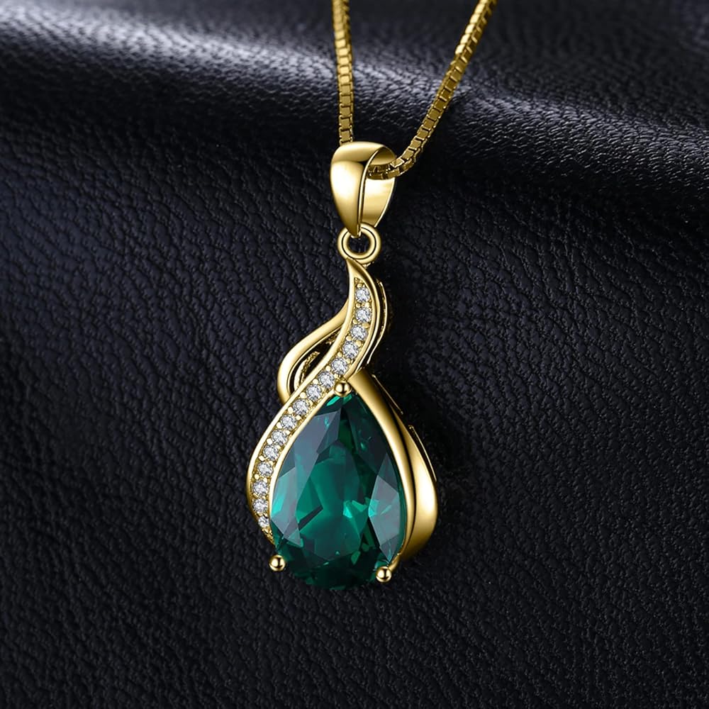 JewelryPalace Pear 2.8ct Simulated Nano Green Emerald Pendant Necklace for Women, 925 Sterling Silver White Yellow Rose Gold Plated Necklace for Her, Fashion Gemstone Gift for Girl 18 Inches Chain
