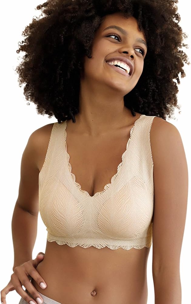 💨 Kind reminder: The size of this product is slightly small, it is recommended to purchase one size larger. SOFT COMFORTABLE FABRIC: Niidor Seamless bra lace fabric: 70% Nylon and 30% Spandex, lining fabric: 64% Nylon and 36% Spandex. Light and not stuffy, sweat-absorbing and breathable. Zero suppress the chest without elastic underwire bands. A silky, thin and elastic fabric, a smooth wirefree bra will stretch to fit your girl,which brings you the most comfortable wearing experience.
