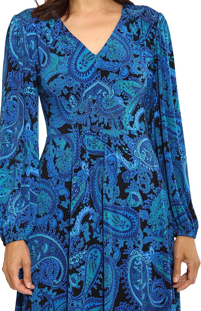 London Times Women's Dresses Smocked Empire Waist Fit and Flare Dress