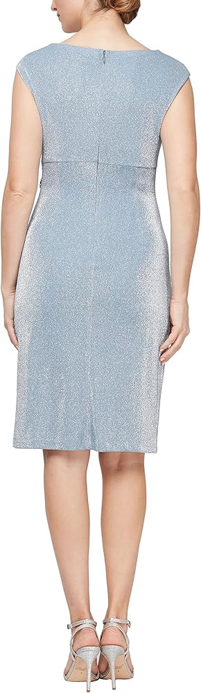Short Cowl Neck Sheath Dress With Embellishment Detail at Hip