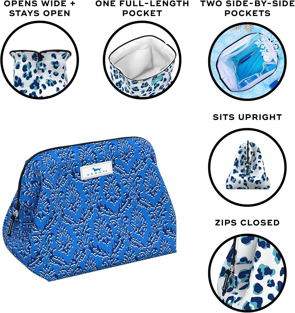 STRUCTURED WIRE FRAME OPENING pops wide open and stays open for easy access to all your beauty essentials, then snaps closed and zips shut for secure transport.