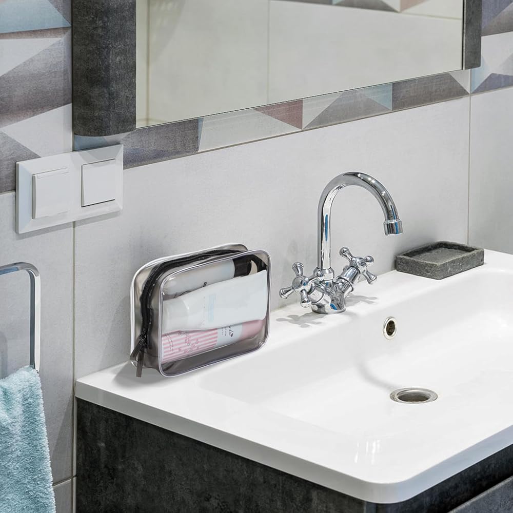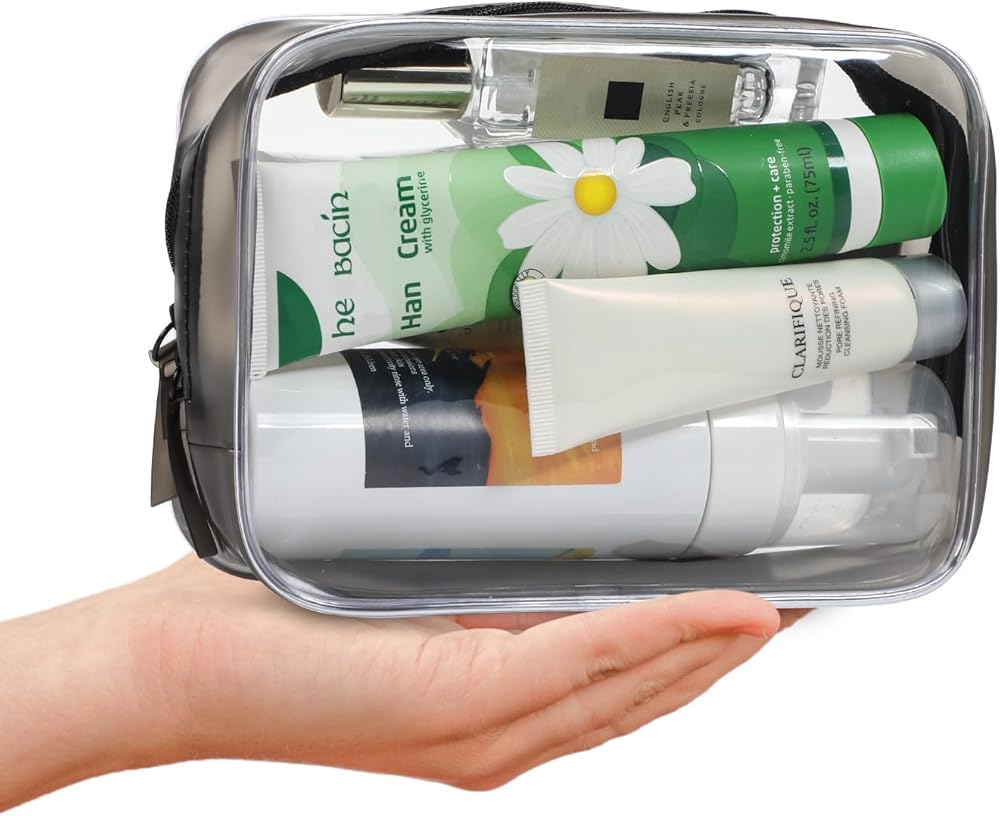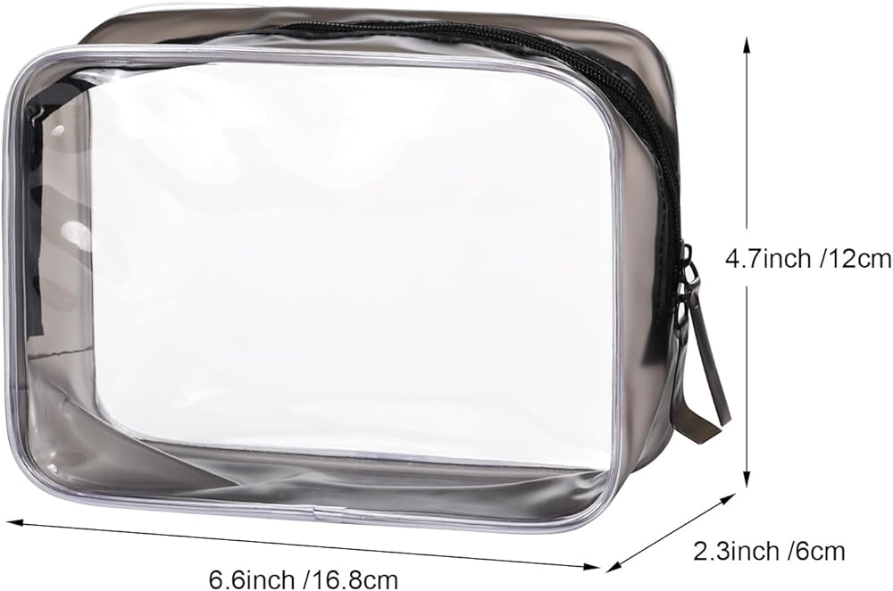 TSA Approved: Our Toiletry Bag Compliant with TSA rules, the travel makeup cosmetic bag size is: 6.6*2.3*4.7 inch/ 16.8*6*12 cm (Please note that it's a small bag). Our transparent travel bag lets you breeze through security without opening it up. It can be loaded with a complete set of skincare products, shampoo, facial cleanser, lipstick, makeup brush, shaver, medicine, etc