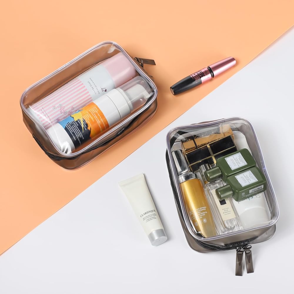 WantGor Clear Makeup Pouch 2 Pack TSA Approved Cosmetic Bag Organizer Small Makeup Bags Case Travel Transparent Toiletry Bag Carry on Travel Accessories for Women Men (Black)