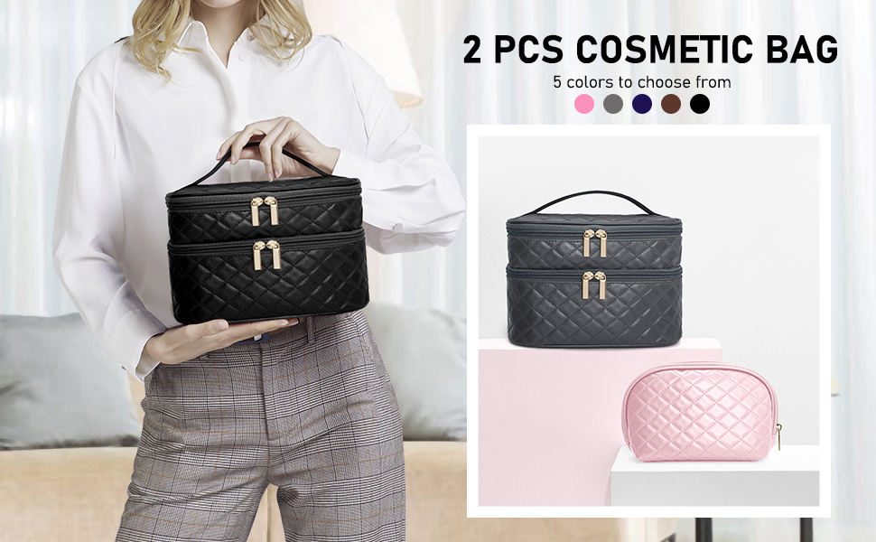 Muilti-colors: new make up bag has five colors: black, pink, blue, gray and brown. The big cosmetic bag and the small makeup bag are the same color, just to let you choose the color you want. Among them, the lining of black and blue cosmetic bags is black, and the lining of the other three colors is gray.