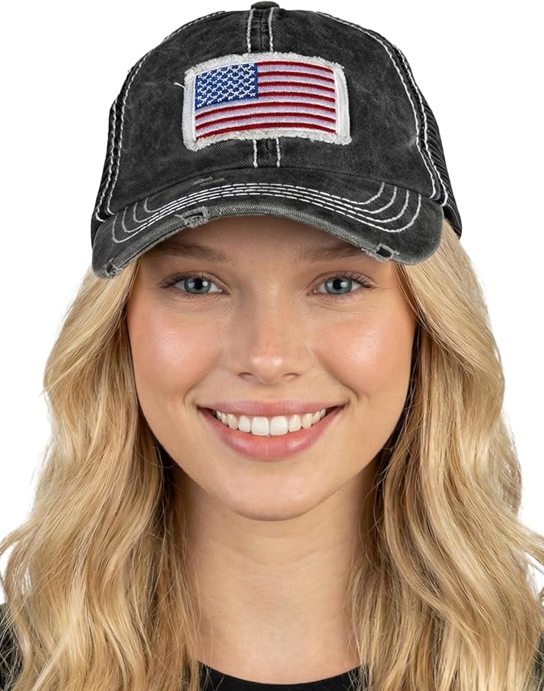 GREAT LOOK: Vintage style; Distressed with mesh backing; Low profile crown; 6 panel, polo style design. Various sayings to choose from in many different colors. Unconstructed style gives off a "dad hat" vibe.