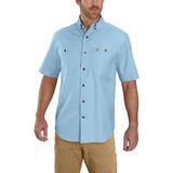 This men's Carhartt work shirt is built for freedom of movement. The short-sleeve shirt is made of heavyweight cotton that's soft and durable. Built-in stretch and flex lets you load boxes or swing a hammer with ease.