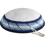 At Zion Judaica we spare no efforts in bringing you only the finest Hand Knitted Kippot. These all hand-made head coverings are both, beautiful and comfortable. Use these daily for yourself, children and when you celebrate a special occasion as a Bar Mitzvah, Bat Mitzvah, Wedding etc. A quality hand knitted Kippah is measured by the density of the weave and fineness of the threads, we strictly only use unstarched yarns and always weave them tightly which results in the prefect balance of softness and sturdiness. Measures about 6" in diameter. Due to the nature of handmade items, color, size, and appearance may differ slightly. A Kippah clip is included with every Yarmulke.