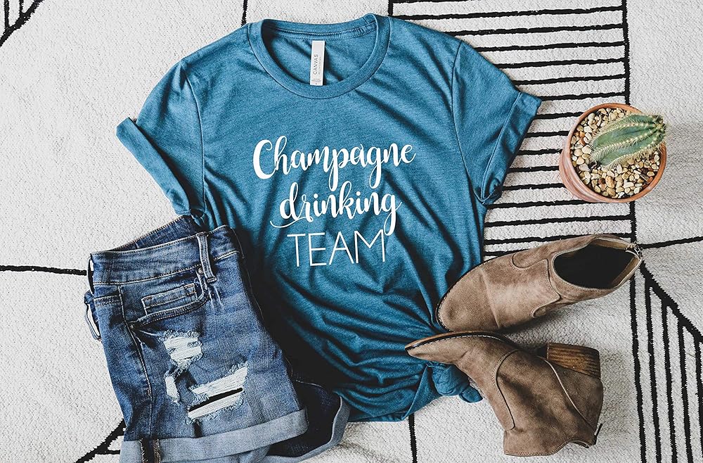 Champagne Drinking Team Shirt. Soft and Comfortable Premium Unisex T-Shirt. Funny Drinking Shirts.
