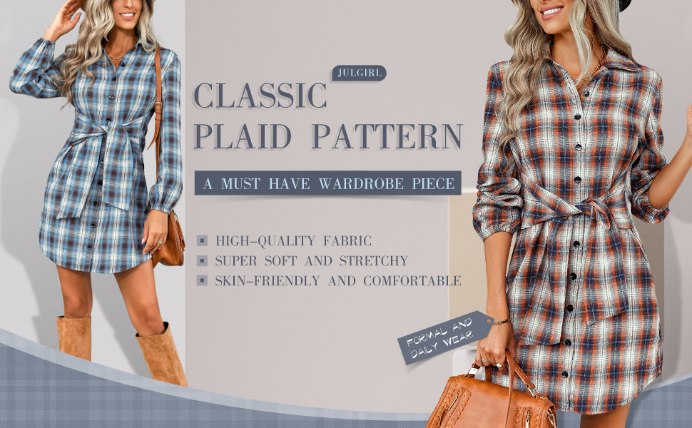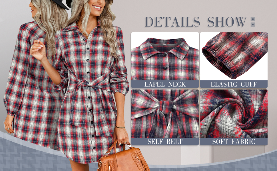 Features : Long sleeve shirt dress, turn-down collar, button down, self belt, it looks great with leggings.v neck shirt dresses for women,button down plaid winter dress ruffled dress,plaid women's fall dresses tops for women.great gifts for wifes,great gifts for classmates,great gifts for grandma,great gifts for mother,great gifts for daughter,great gifts for friends.